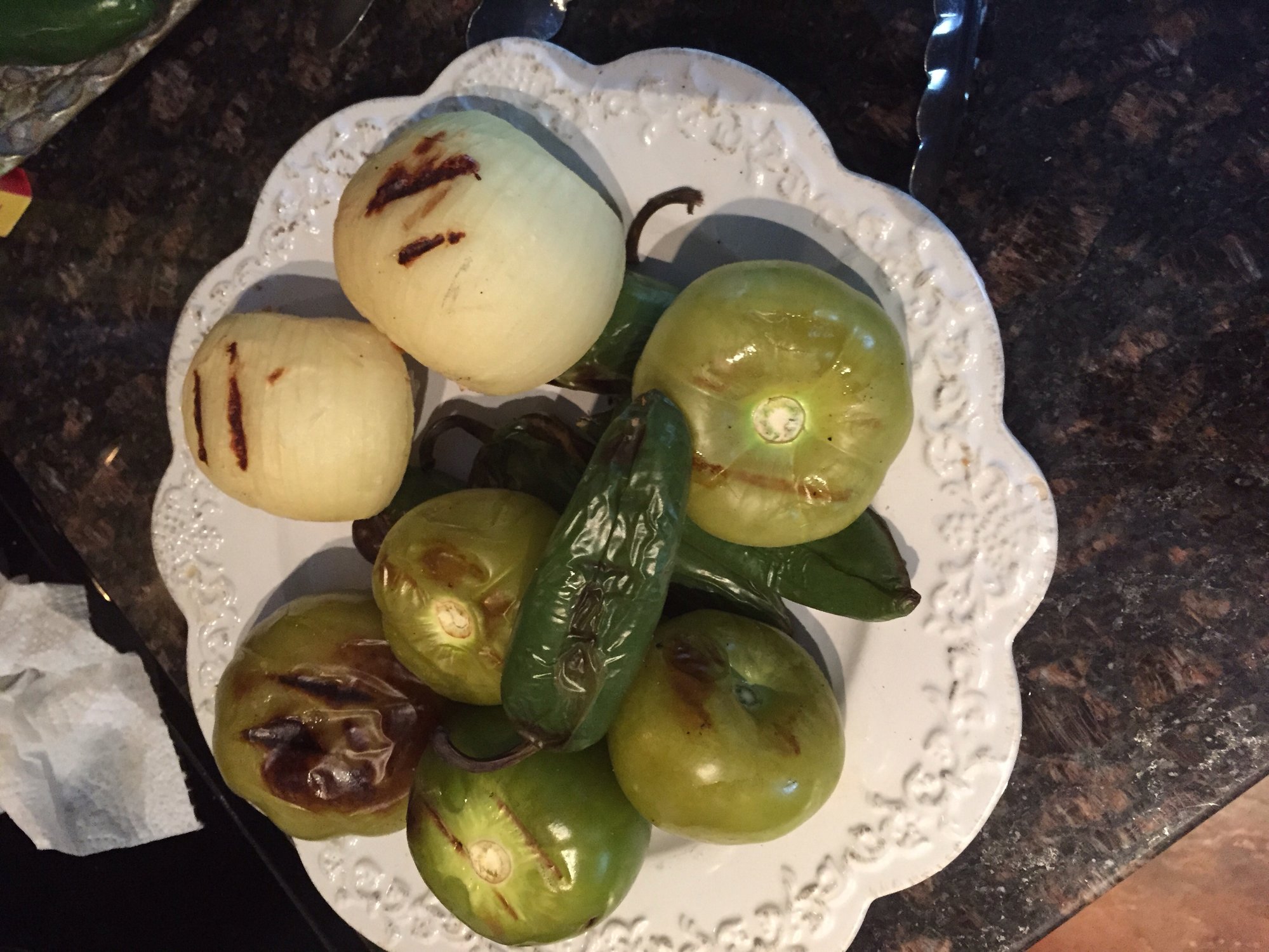 Ive seen even a few homemade salsas recently so wanted to try my hand. Found a handful of ingredients at the store, roasted them then into food processor. Still fairly hot so letting it cool before the taste test. Here goes nothing with the picture order.