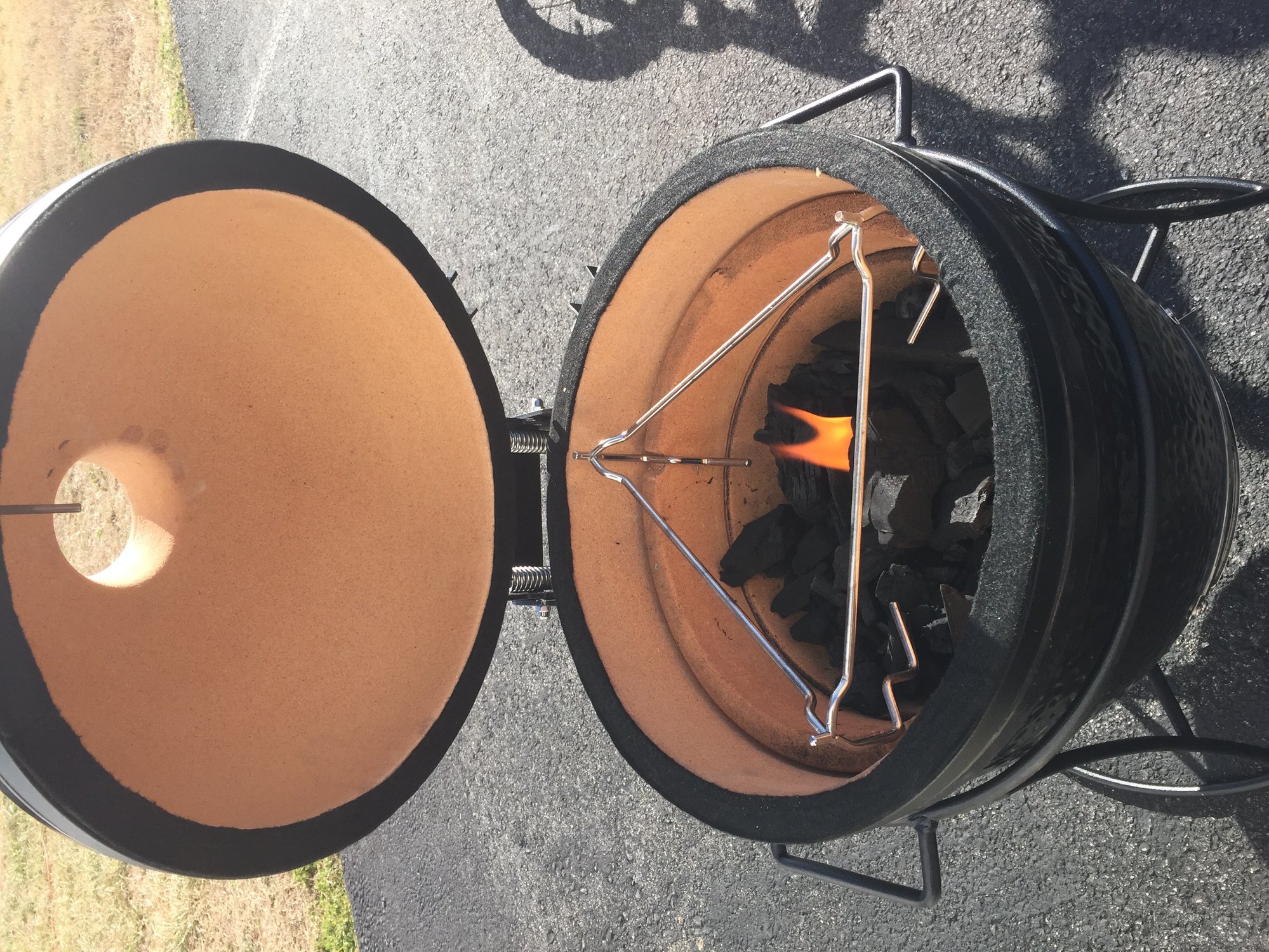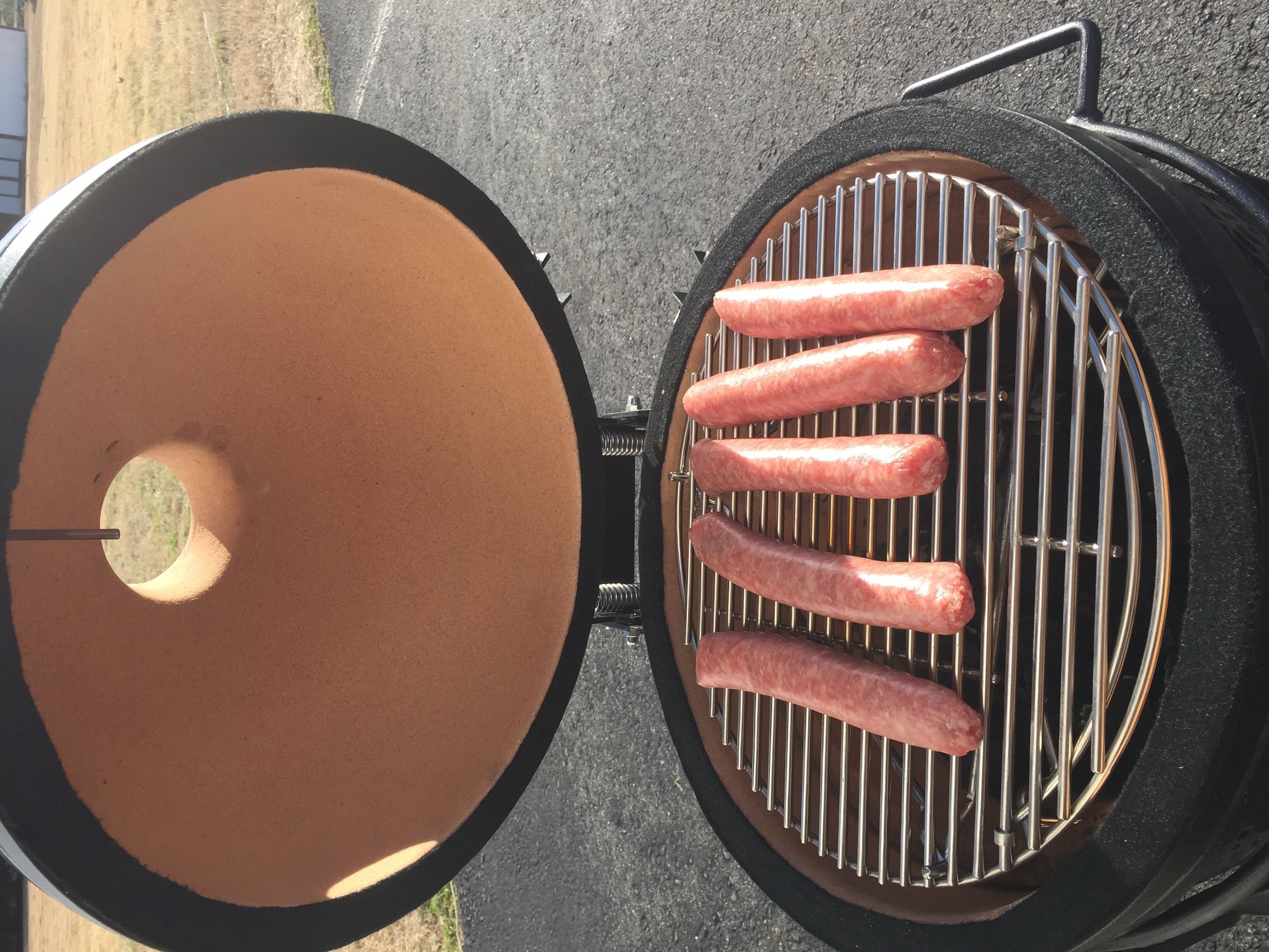 i hate to admit this but I have had this little fella for 3 months and today is the first time I have used it. Decided today while at the Amish market to pick up some apple maple grillers. Fired it up and someone else thinks that this is "his new egg". Comments