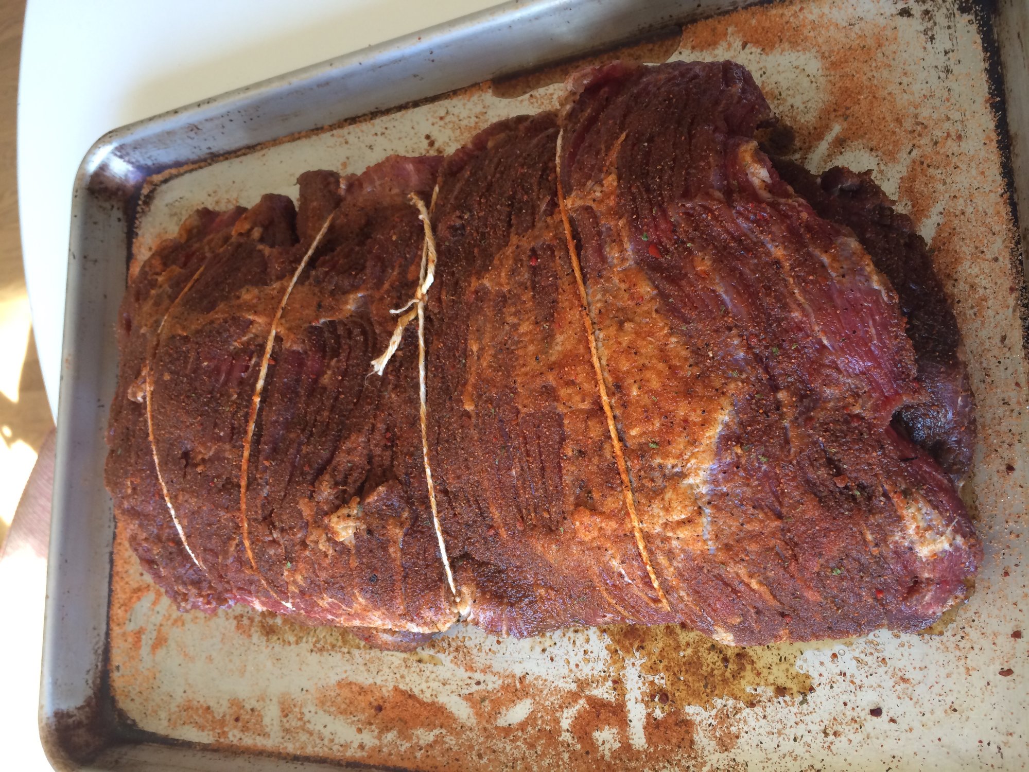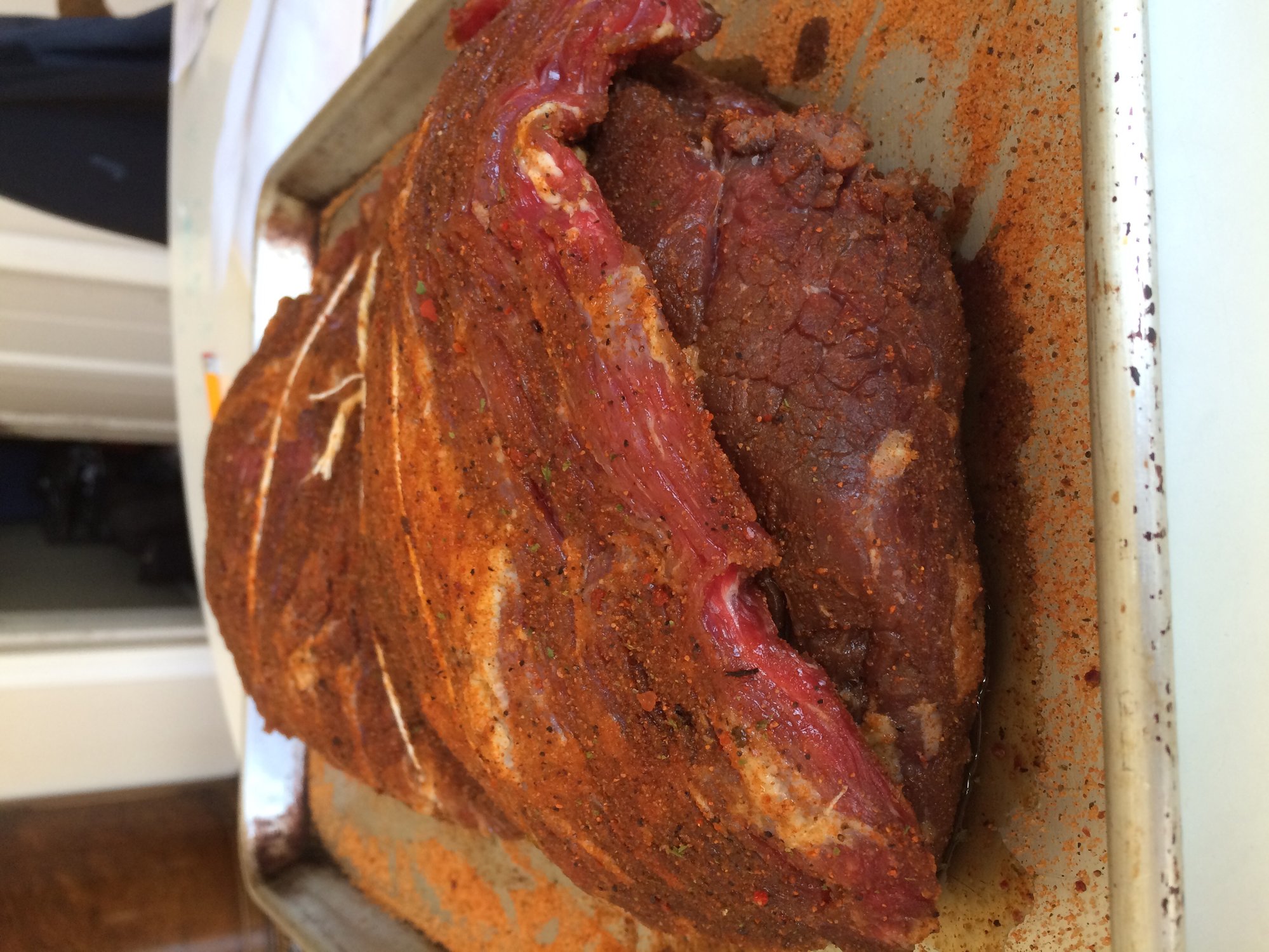 Two points-each just under 4 pounds. Rubbed, stacked, tied together. Now on at 250. Hoping for good things.