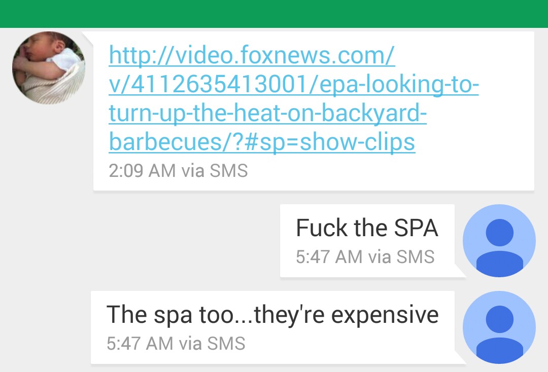 My wife sent me that this morning. Auto-correct hacked me.Smokin' Todd said:And yes that includes BBQing on Eggs! Im not going to get into my passion of political discussions on this forum, but this post is to inform you all that unelected officials of the EPA are now targeting us in our own backyards. Say what you want about the EPA...great, or awesome, blah, blah,...but just know that no matter what you feel these days are coming...and it wont be long after that until they regulate competitions. So it won't be delirious to think that one day you'll have EPA agents all over the Jack. http://www.washingtonexaminer.com/backyard-burger-and-wiener-roasts-targeted-by-epa/article/2561474