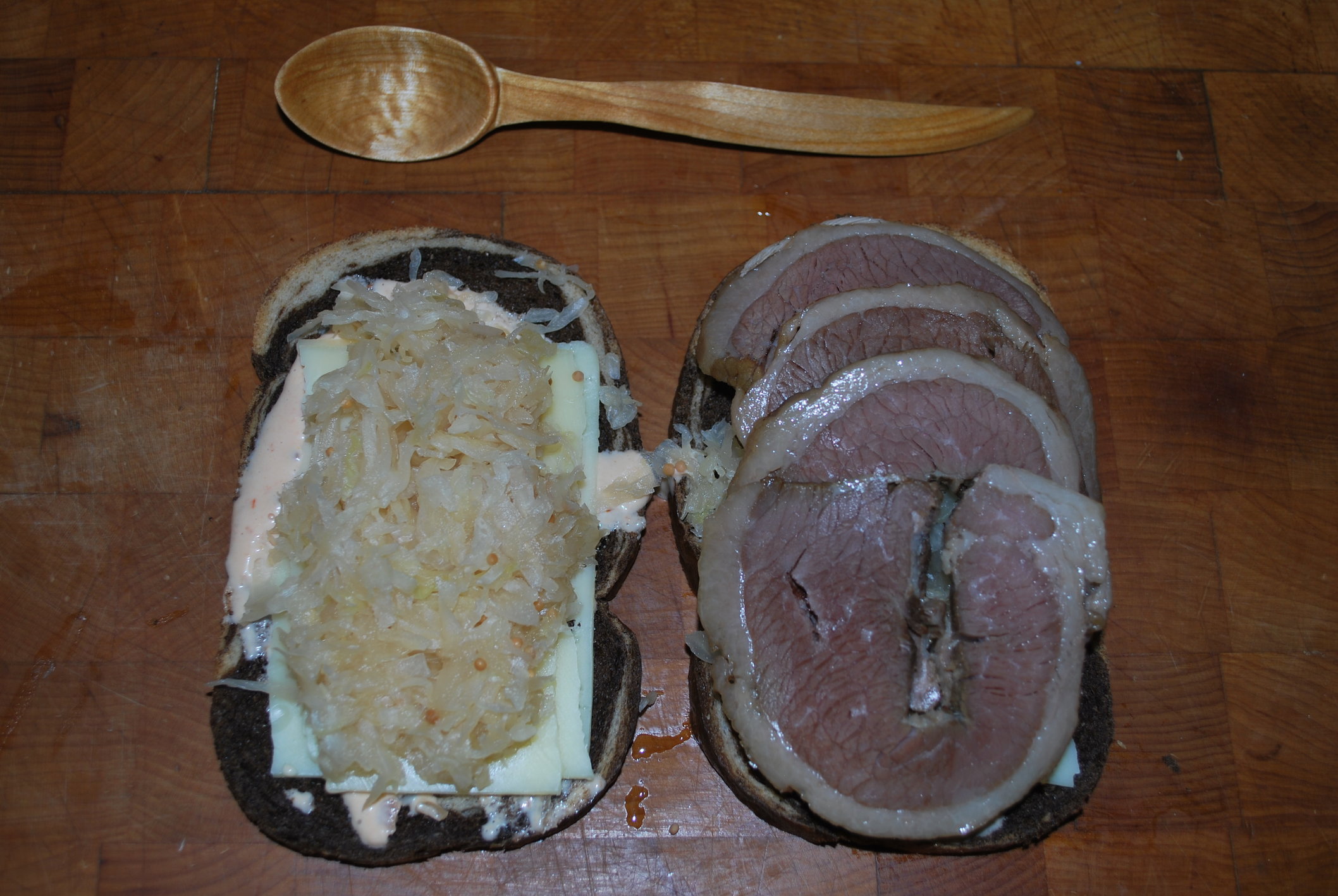your wife would hate these, the corned beef is from an old english butcher/market here thats been making them for nearly 100 yearsgdenby said:As always, great looking food. But I can't let my wife see the pics. The Reuben is her favorite, she orders it at any restaurant to judge the place's quality. If she saw yours, she'd be tempted to take a trip to Maine.