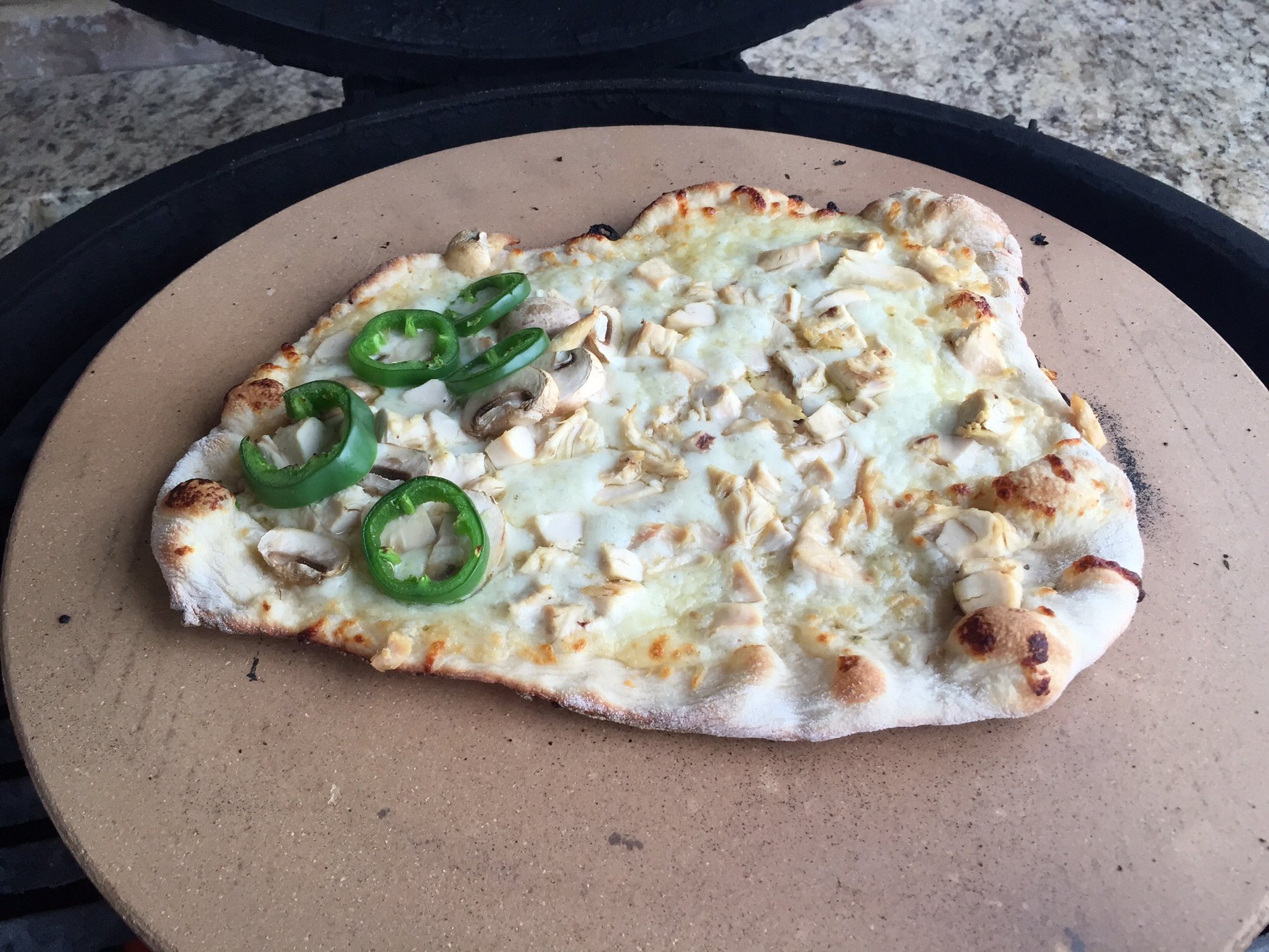 This was the best...chicken Alfredo. The pepperoni was great was well. I did a little better job with the roundness of the dough on that one. Other pic is my Egg's new home.