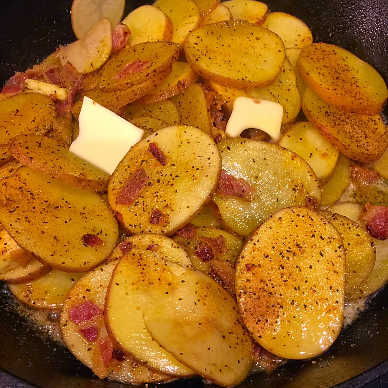 It's tough to beat a Texas 1/2 chicken with Honey Hog Hot and some Season All-ed potatoes cooked with bacon in bacon grease.