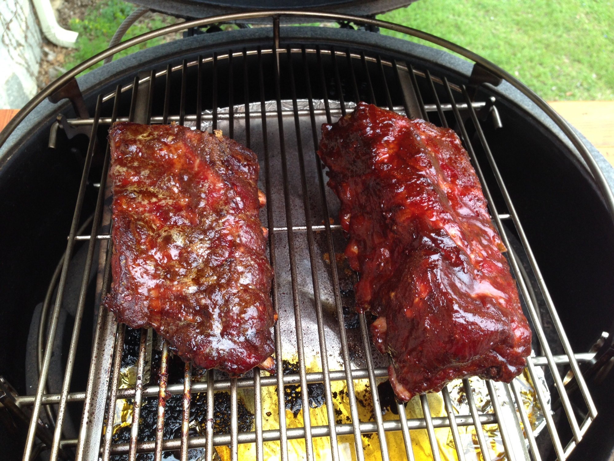 Well the darn chunks did finally get started during the Finish.. Lol. I only did 1 rack. 1/2 for me with sweet baby rays. And the wife's with just some liquid Parkay and brown sugar.