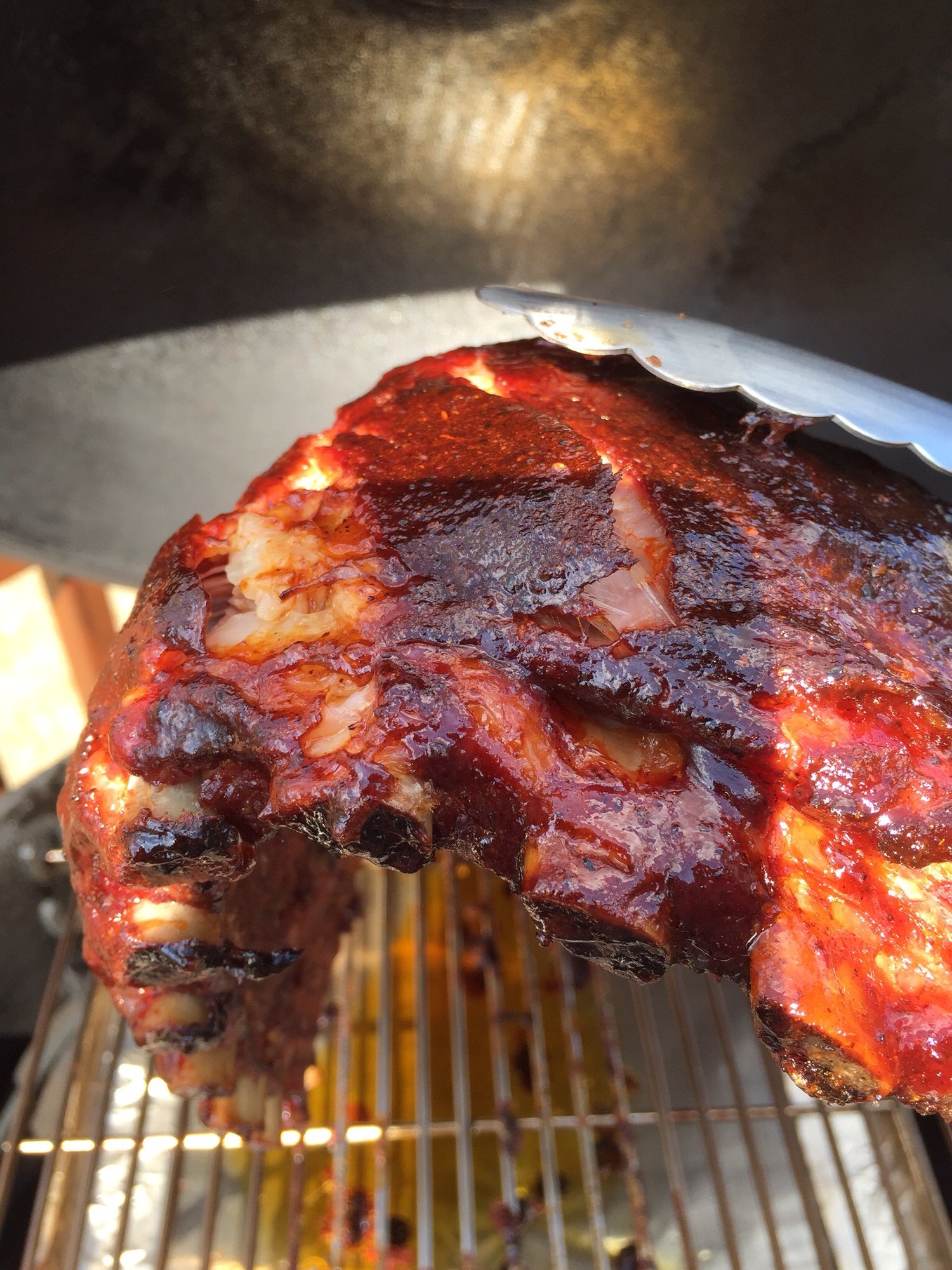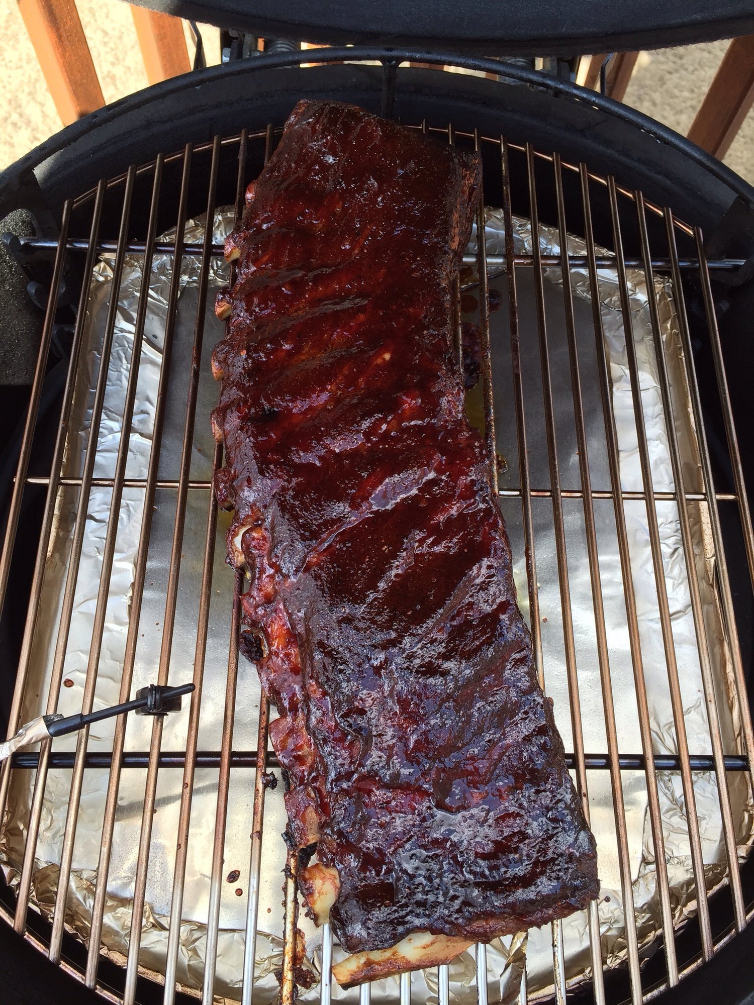 Thanks everyone for your comments. Here are two photos of the ribs. I cooked them indirect at 275 degrees for about 4 hours and 23 minutes. I rubbed them down with mustard then put Myron Mixon Original meat rub on them. I think that these were the best yet.