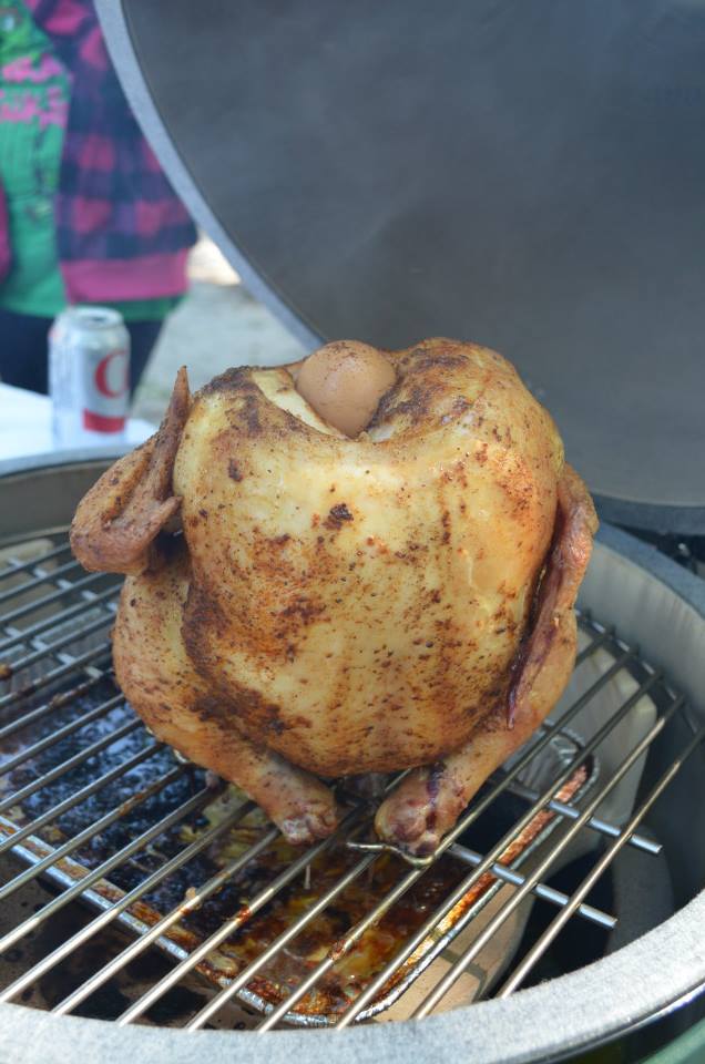 Then 375 degrees indirect for about an hour and a half and awesome moist chicken is your reward. Simple and easy. It was either a big hit or people were really hungry as I "sold out" (four chickens) before the event was over. Even Linkie said it was awesome but she could have just been being polite.