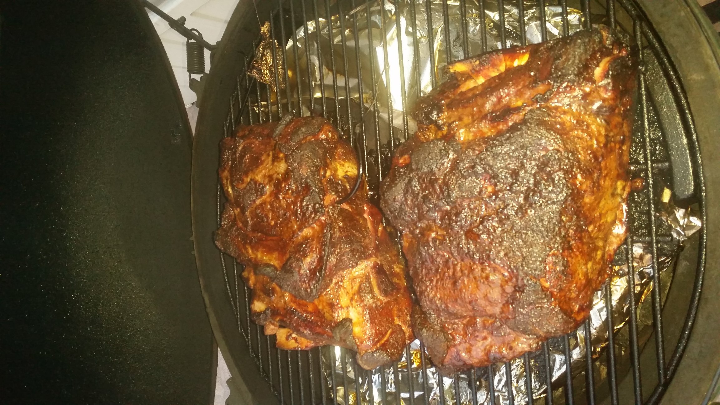 Was that a picnic or a butt? They both look wonderful.Ladeback69 said:Guess I will be FTC'ING tell 5 for dinner. I guess I could have started the butts this morning and had them done. I've pulled the one for ham, but left the one on for pork butt to get a little more done in places.