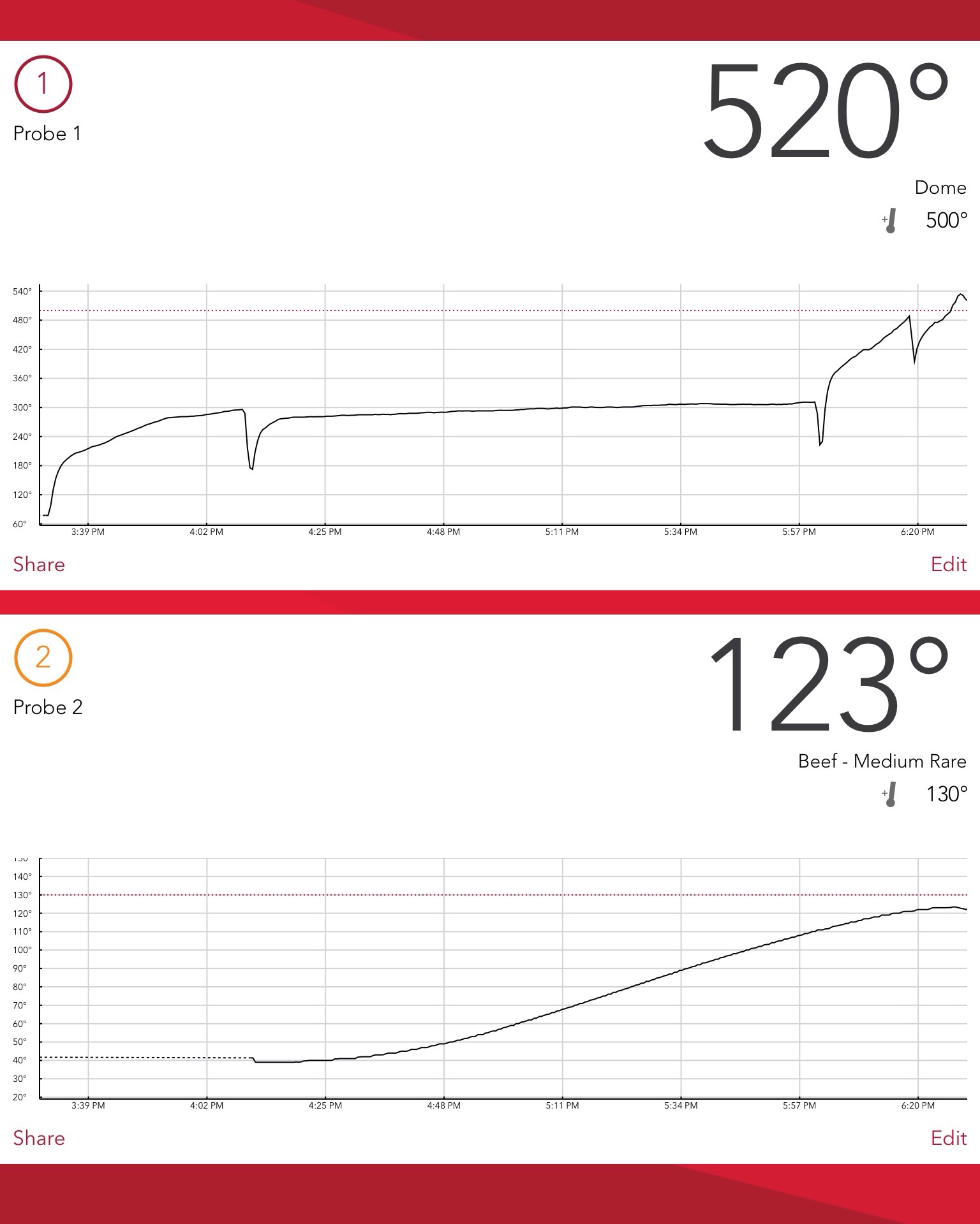 Turned out good. Cooked indirect for about 2 hours at 290-300°. Took it off the heat for about 15 minutes while increasing the temp to about 500°. Put back on for about 10 more minutes at high heat.