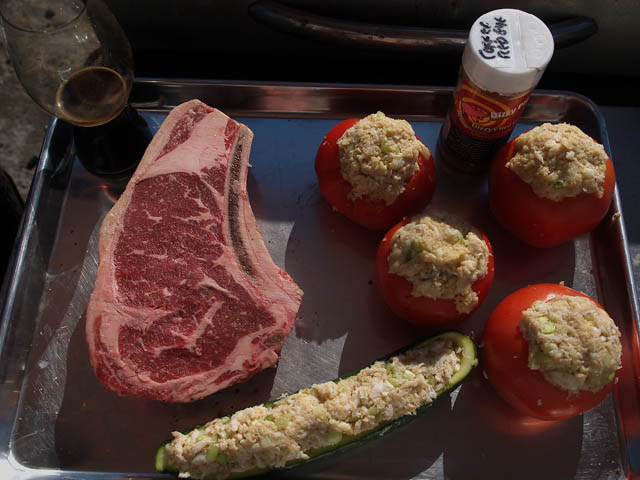 Just a little 2 lb steak and some crab stuffed tomatos and cuke