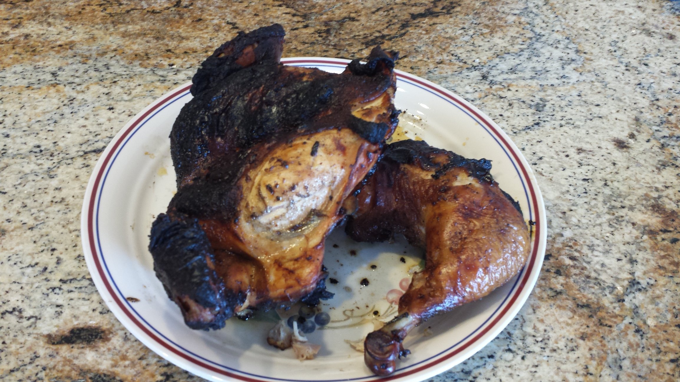 I watched Diners, Drive ins, and Dives.  They showed a BBQ joint that marinaded their chicken in lime juice and orange juice over night.  Then they put on a rub and direct grilled.