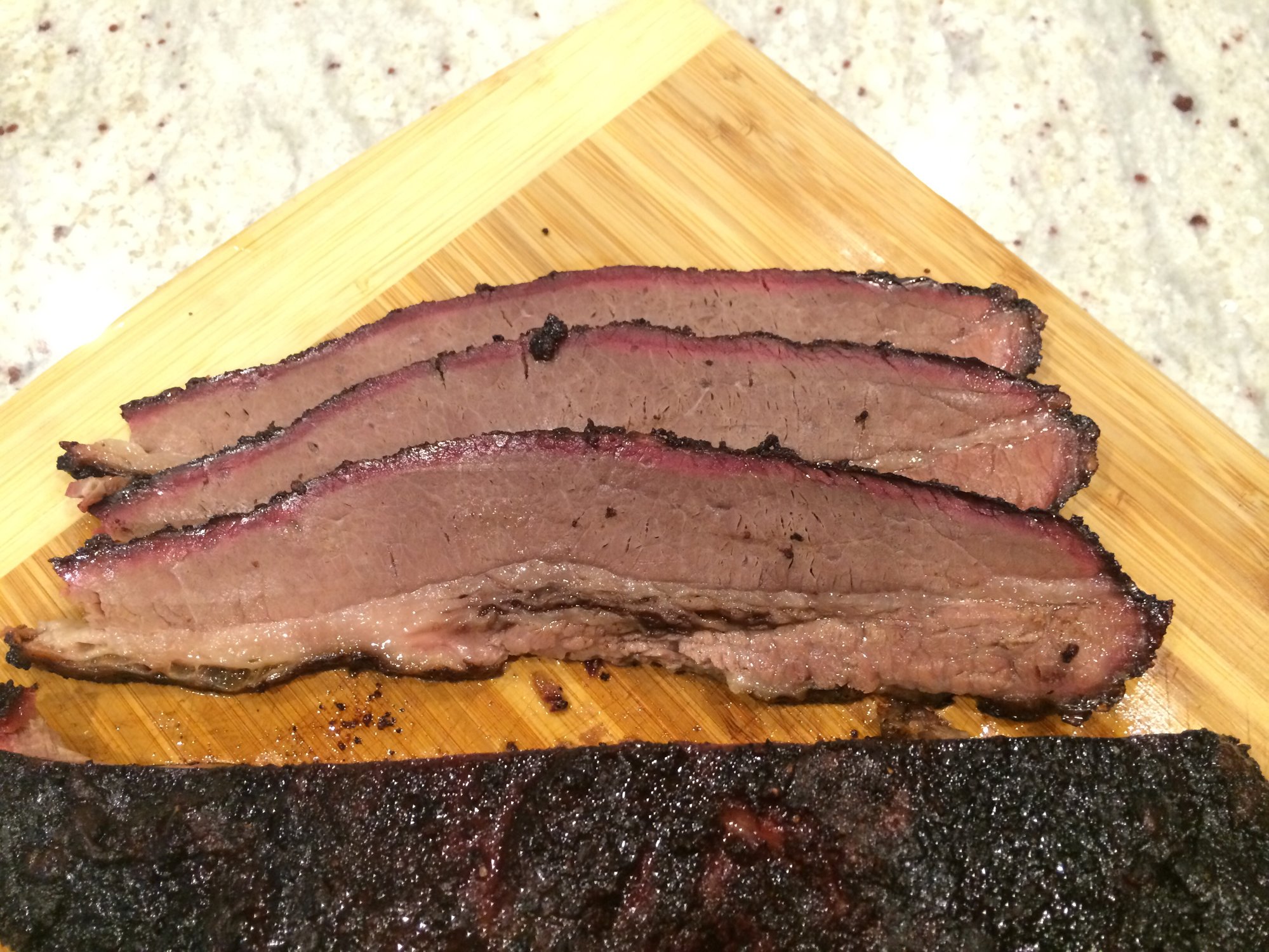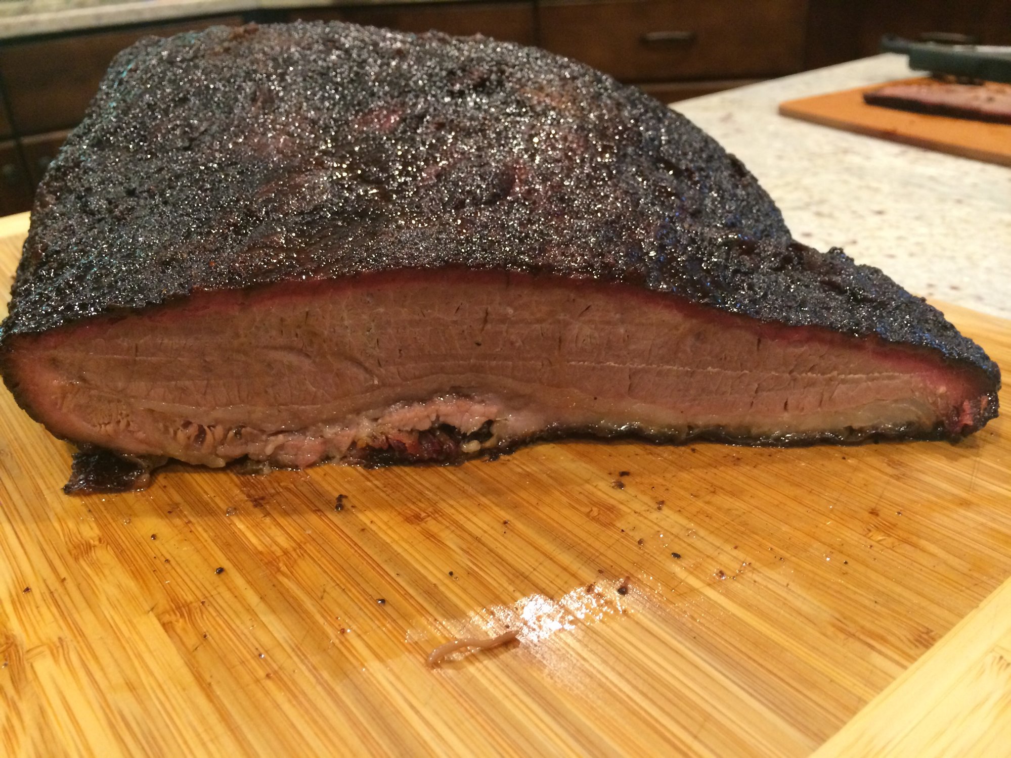 Great looking brisket. My favorite SRF cut.Joe - I'm a reformed gasser-holic aka 4Runner Columbia, SC Wonderful BGE Resource Site: http://www.nakedwhiz.com/ceramicfaq.htm and http://www.nibblemethis.com/ and http://playingwithfireandsmoke.blogspot.com/2006/02/recipes.html