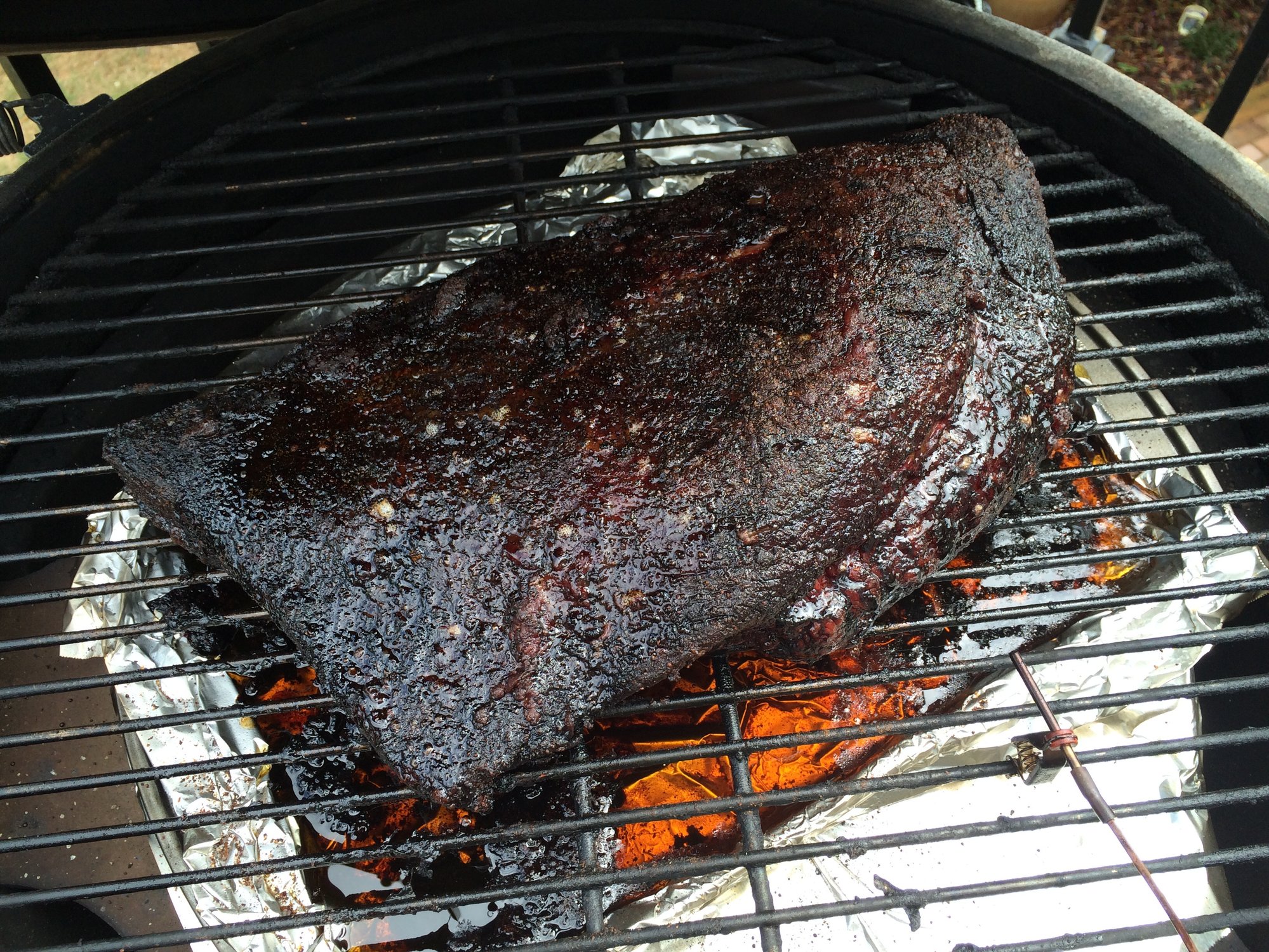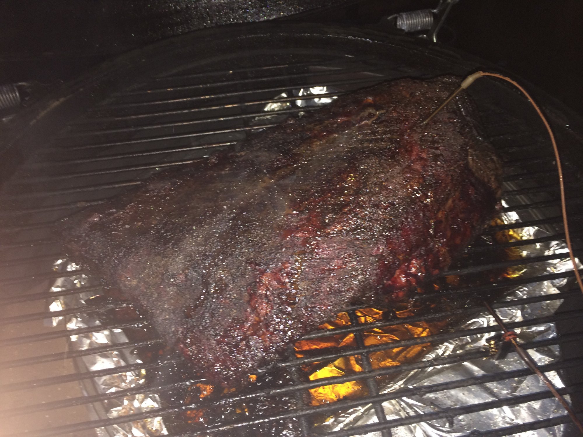 I did move the probe. Thank youlousubcap said:Great eats await. An observation-looks like your temperature probe is in the point? If so, you need to monitor the thickest part of the flat-as that is the place to check for the finish-line "feel like buttah". The point will run hotter than the flat but that is no issue due to the higher fat content. FWIW- -