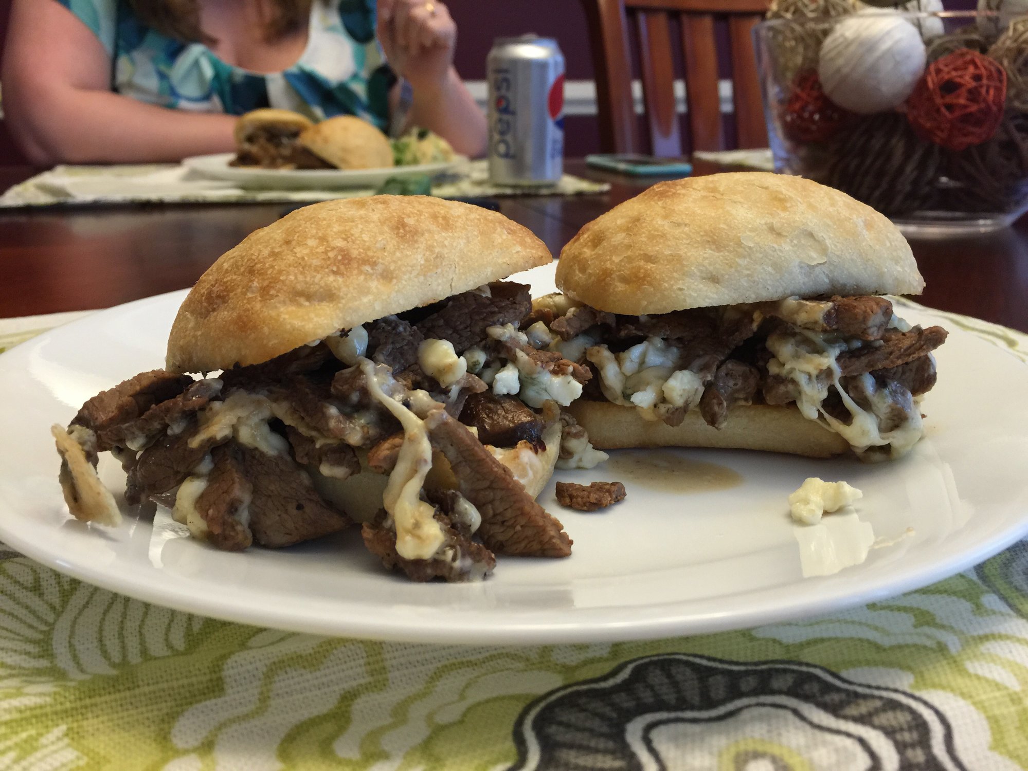 .... on buttery toasted Ciabatta Rolls with sautéed mushrooms and onions, melted Gorgonzola cheese and homemade garlic aioli. Too good and very simple.