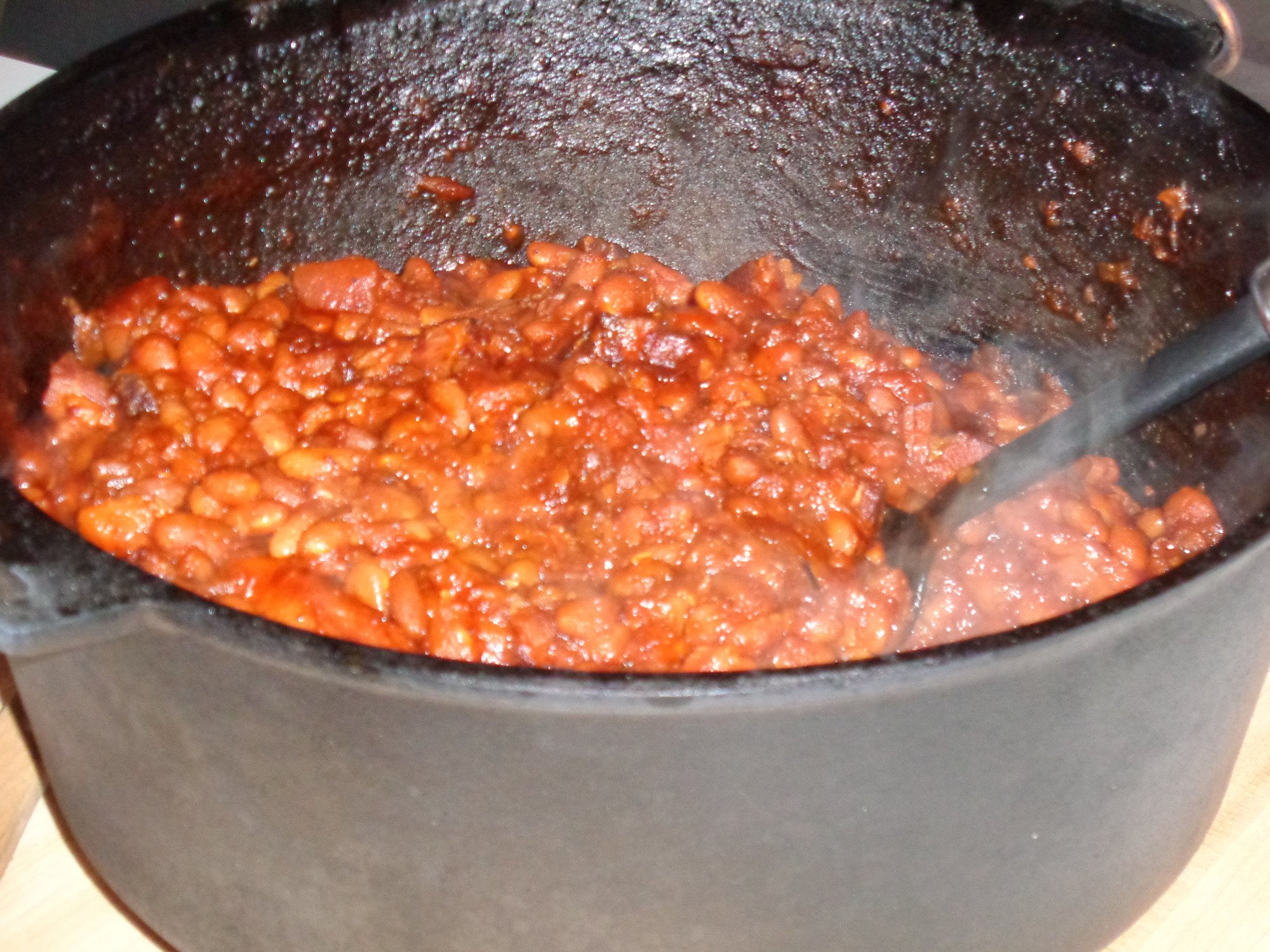 cooked 6 hours lid on and 2 lid off.  next try, more molases and salt pork instead of bacon but all in all was happy with this cook. thanks to carolinaq for posting this recipe