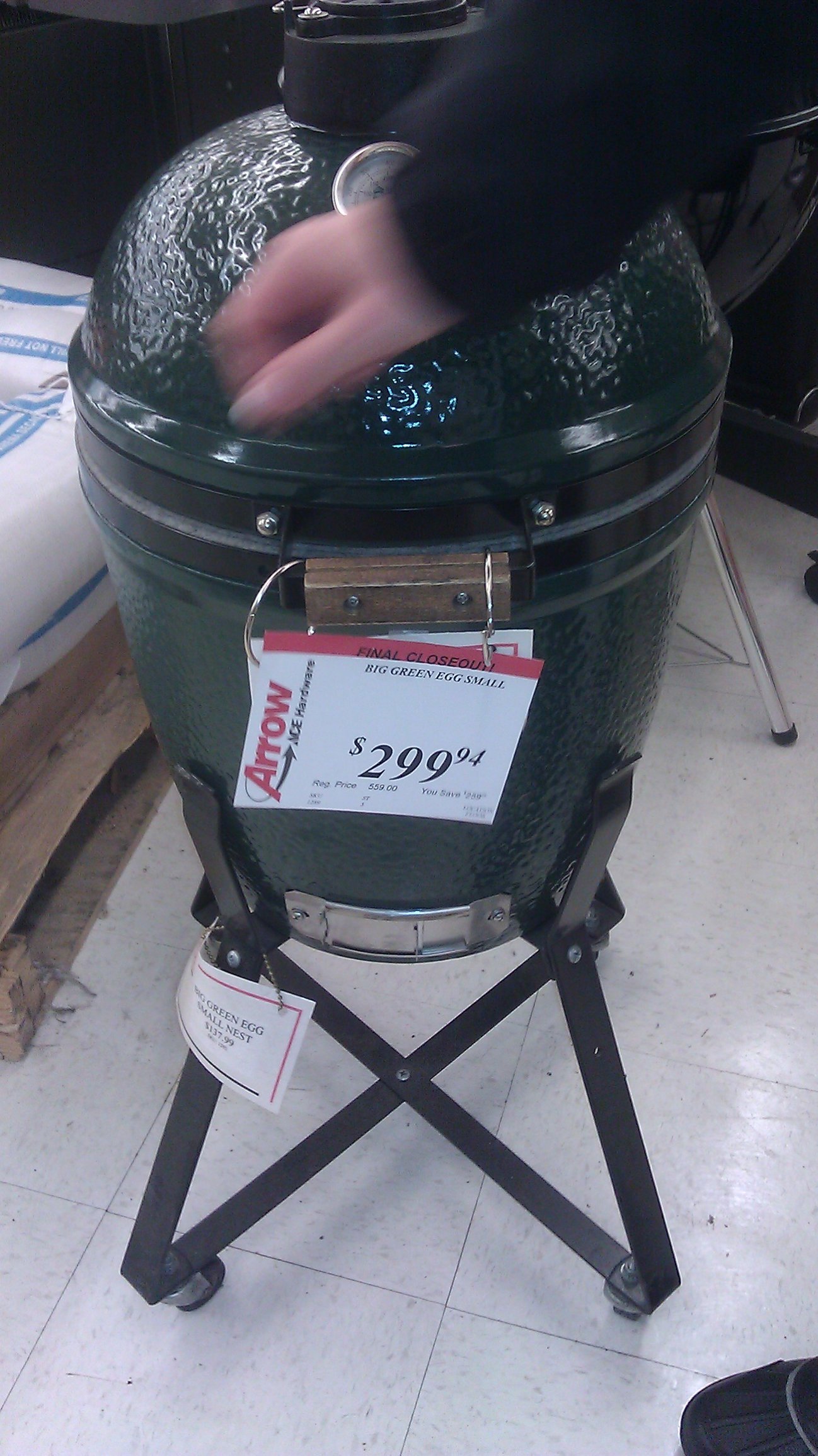@revolver1 My local Ace dealer doesn't sell very many eggs and this particular small has sat on the showroom floor forever. The GM told me that they were not going to carry the small egg anymore due to the lack of interest from the consumer. So he put it on clearance to move it.revolver1 said: