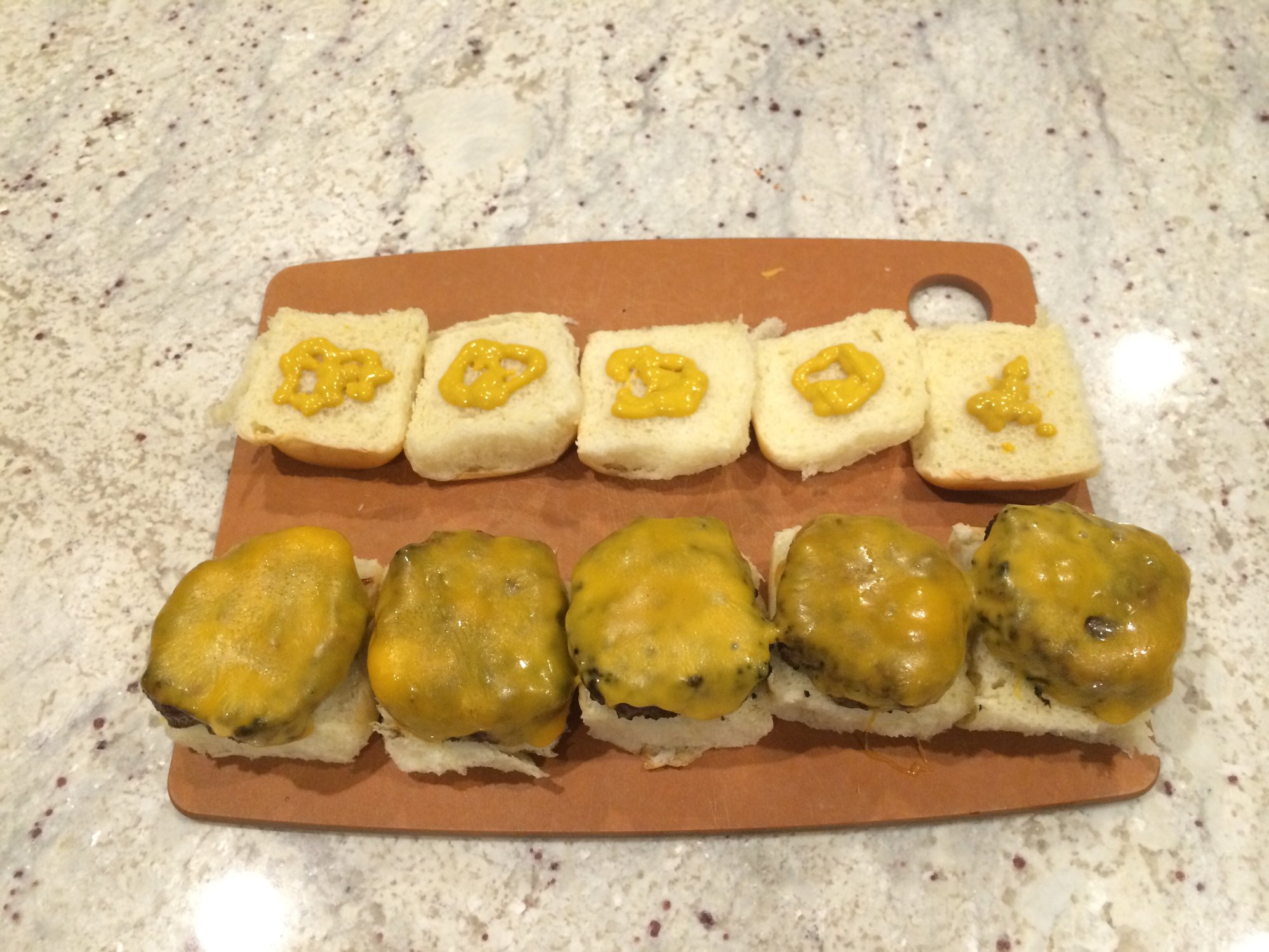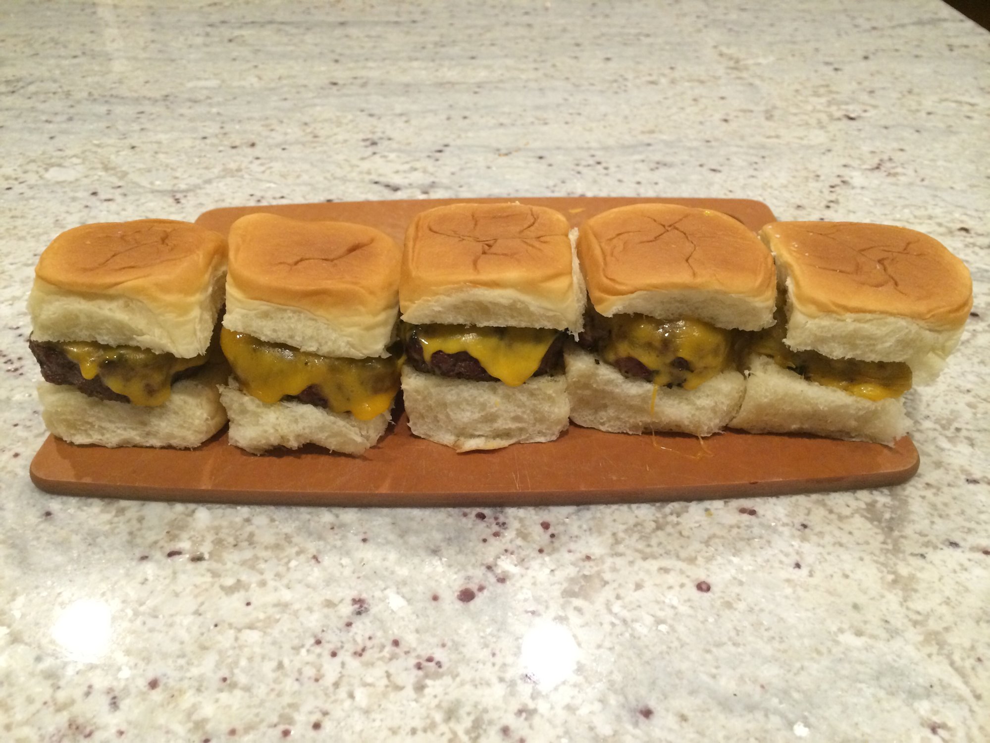 Those look great. I would have slayed the wife in the slider eating competition.Which came first the chicken or the egg? I egged the chicken and then I ate his leg.
