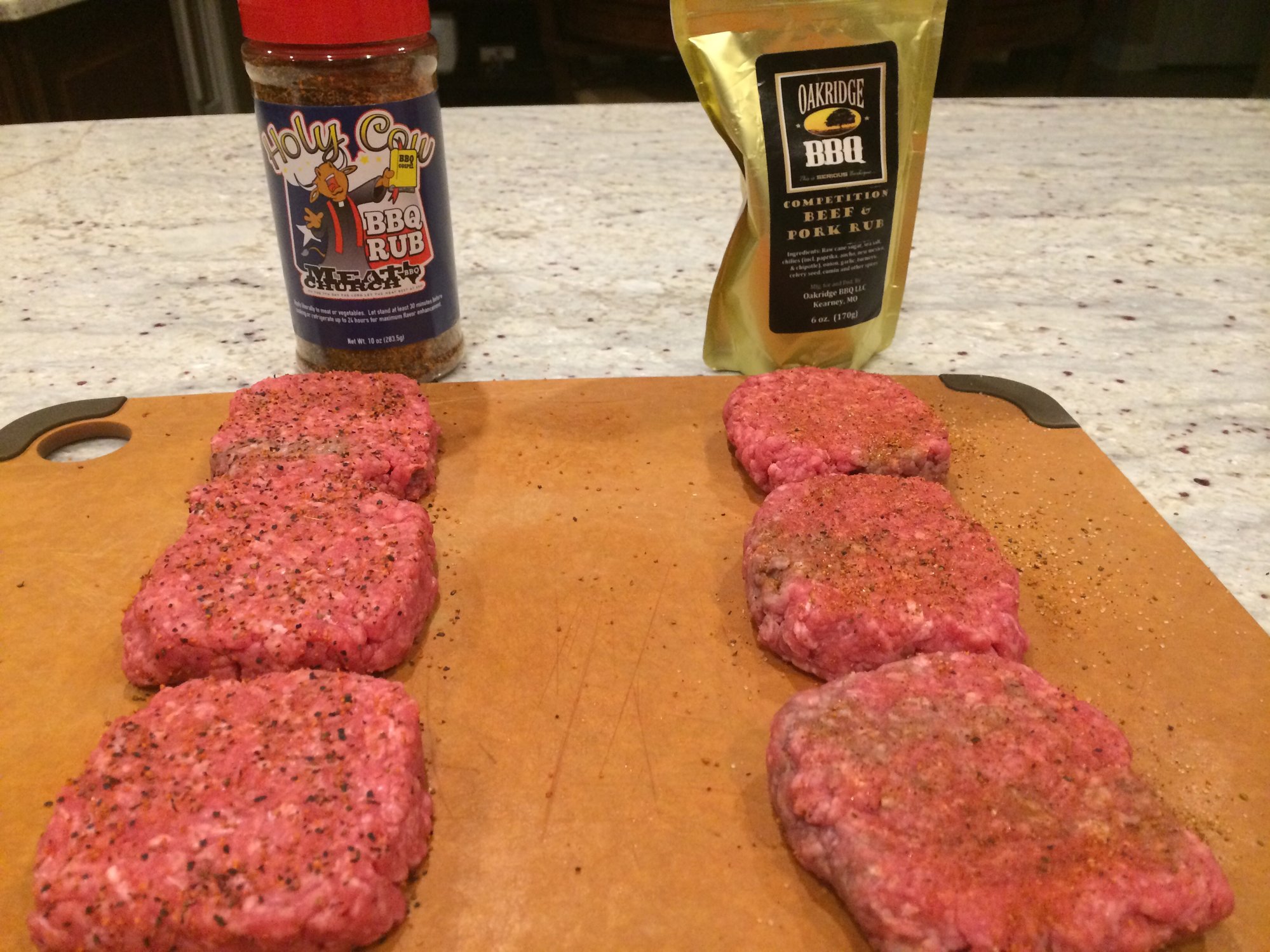 For some reason, I've never cooked sliders before. I picked up some Meat Church Holy Cow today and decided to put it up against Oakridge Competition Beef and Pork Rub. Picked up some 85/15 ground round and Kings Hawaiian Rolls. The wife and I agreed that while both were good, the Oakridge is the winner.