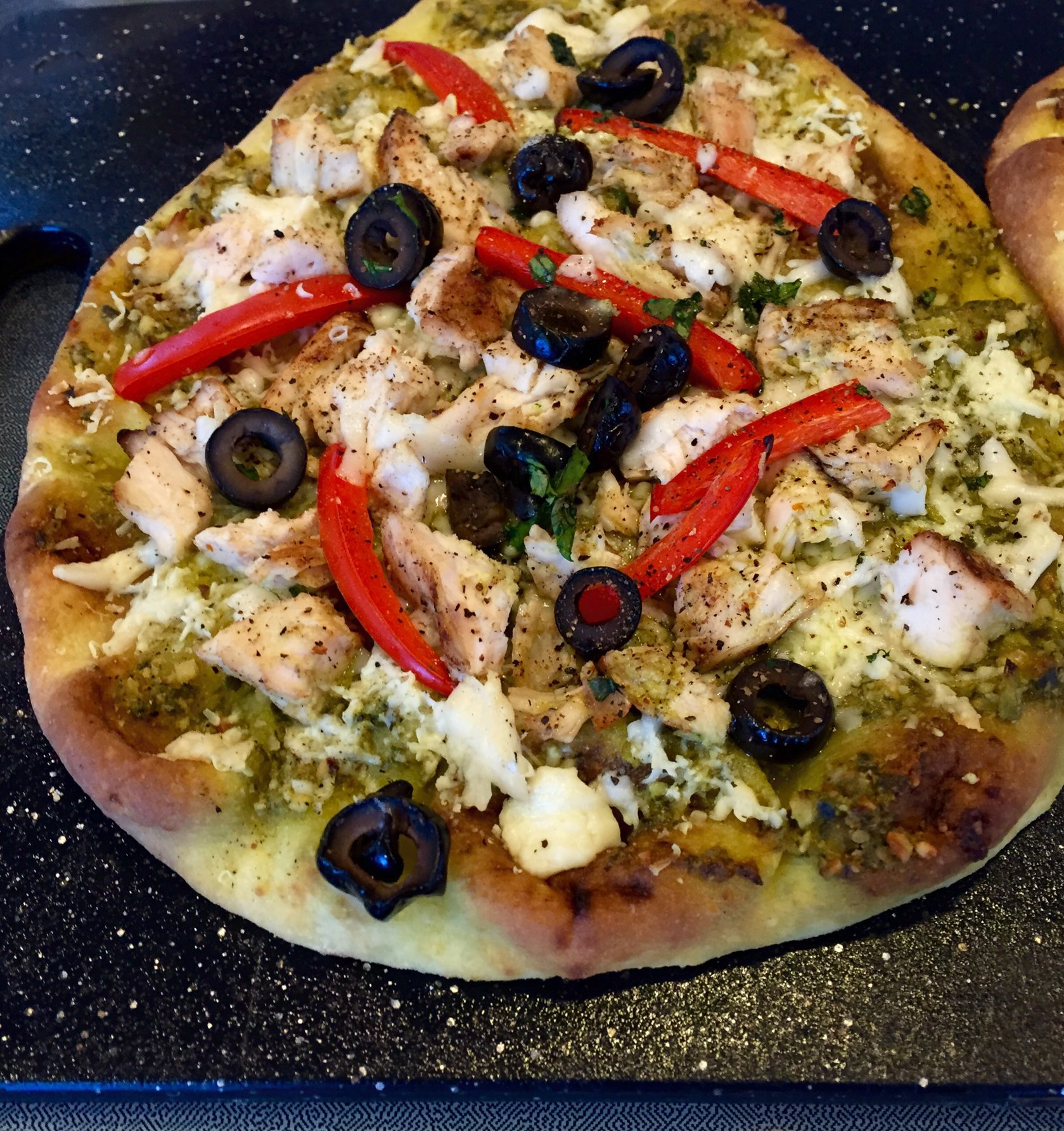 Walking through Albertsons half asleep after work this morning a package of flatbread caught my eye. Picked it up and flipped it over and saw an interesting recipe. Of course I had zero ingredients except for S&P and some other seasonings. The base sauce was store bought pesto Long story short, it's some expensive flatbread. Sorry @cazzy, don't know the exact price. I just know it seemed to cost a lot.