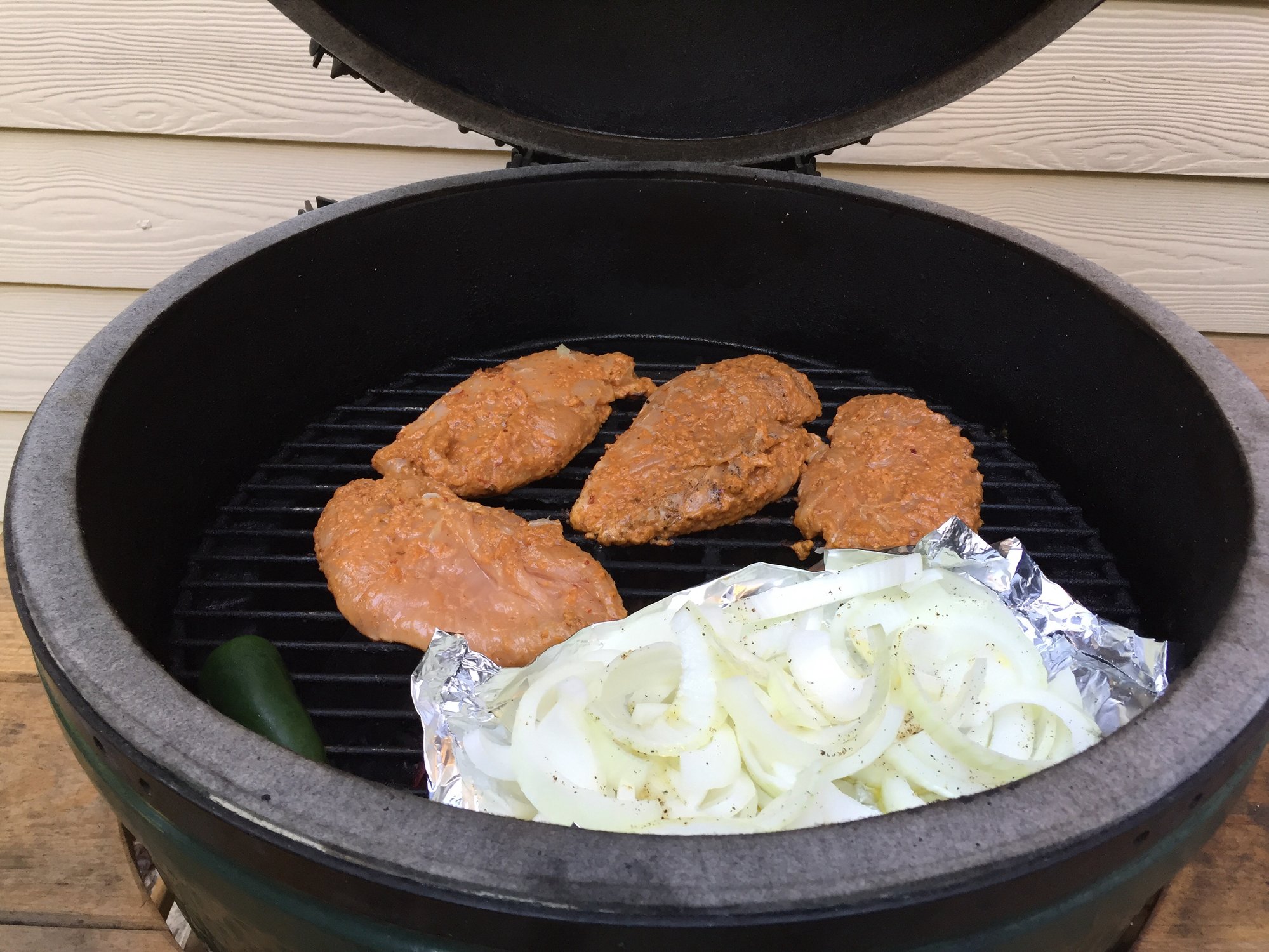 Chicken fajitas in CI, rice and beans, and frozeN margaritas!Large BGE - 2014