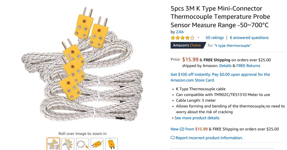 Just decide if you want the standard K type or mini K type. As you can see from the below, this is in my Amazon cart for another day. $3.00 per probe!!!