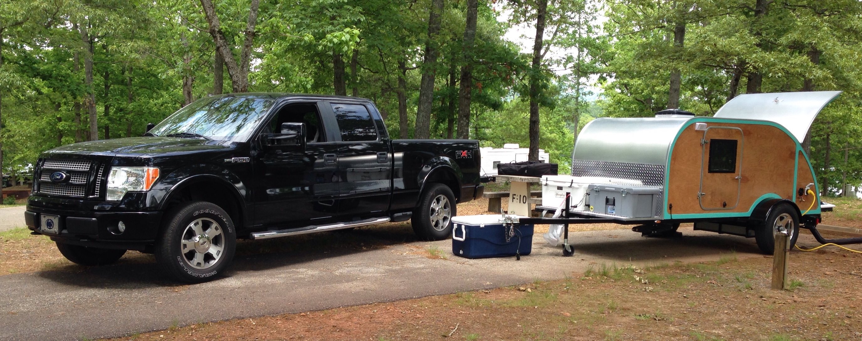 As others have said as well your teardrop is cool! Store bought or did you make it knowing that you have the capability and talent to have done so. BTW what is the long black pipe going out the back if it? Enjoy the Fest!Re-gasketing the USA one yard at a time