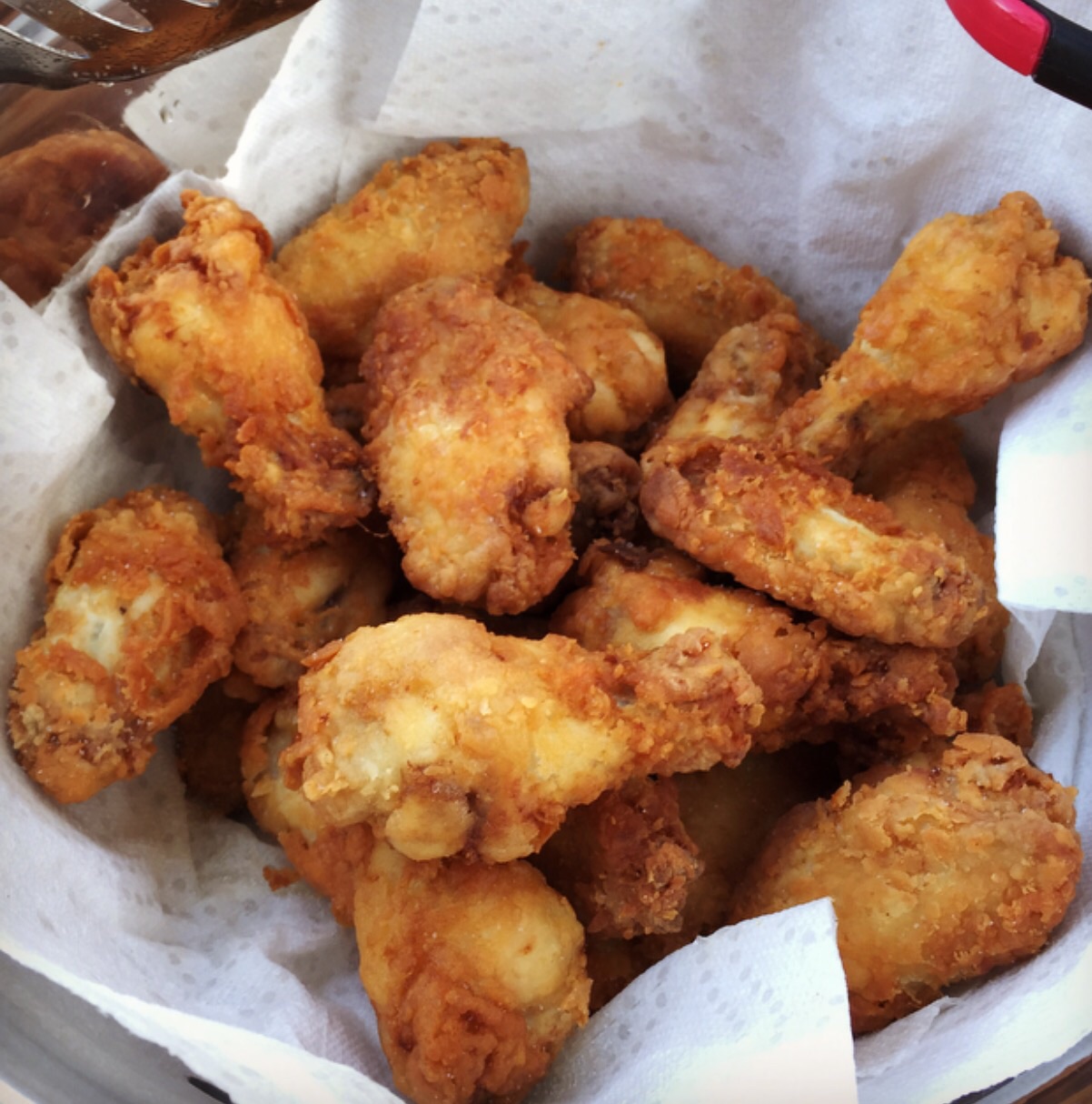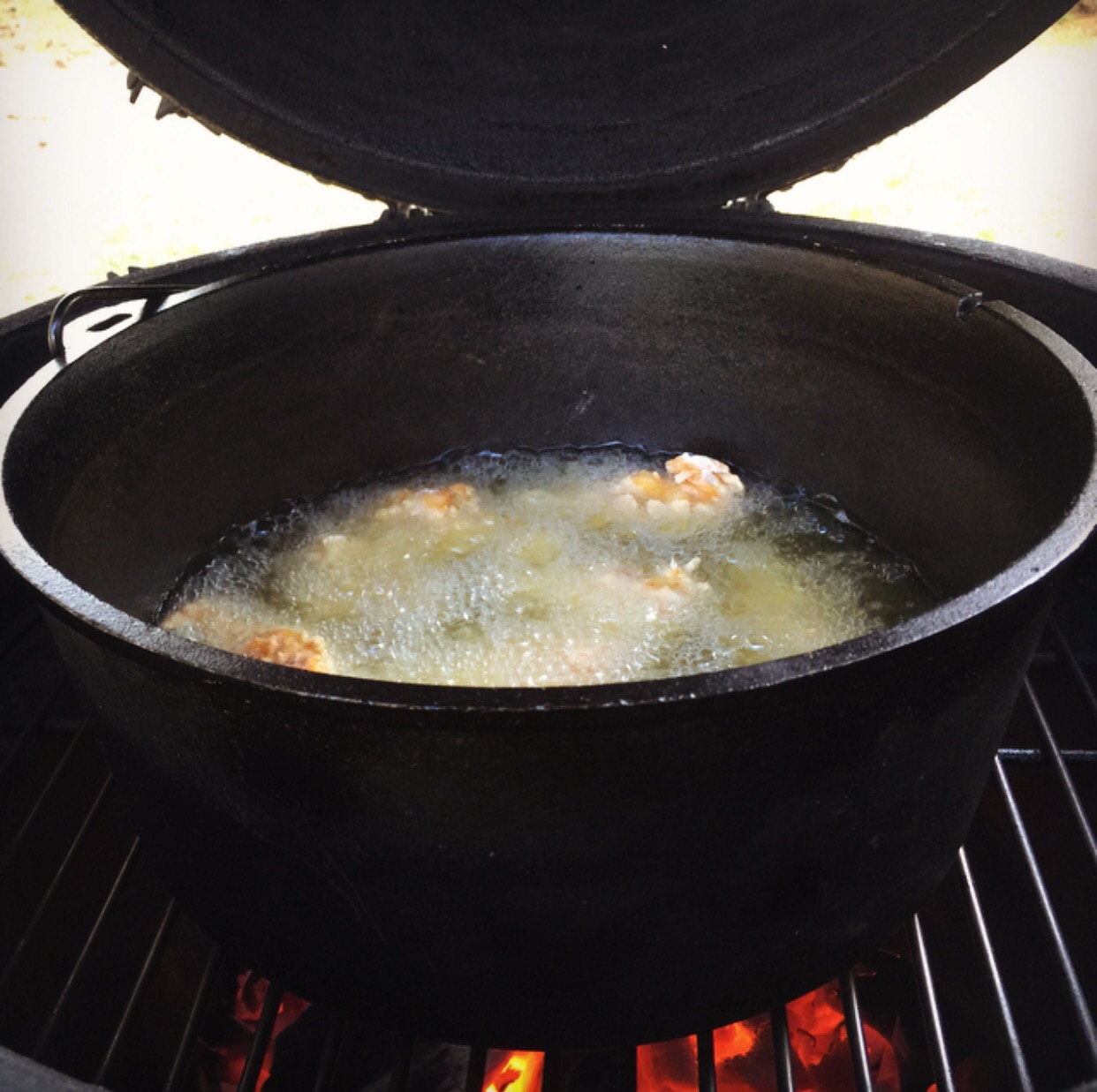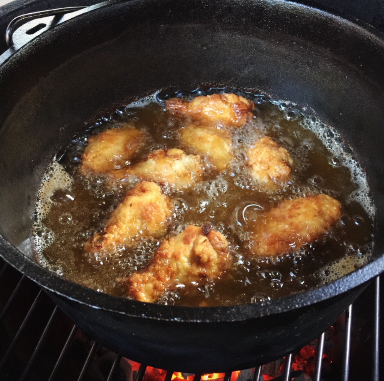 Spent the day cleaning the house and didn't wanna ruin it by smelling it up with fried stuff.  So I used a deep DO on the large and fried some wings.  Also, we saw a Man vs Food episode on Netflix earlier where a restaurant used only hot sauce and flour for the batter.  Tried that out and it worked fantastically. Will be a repeater.