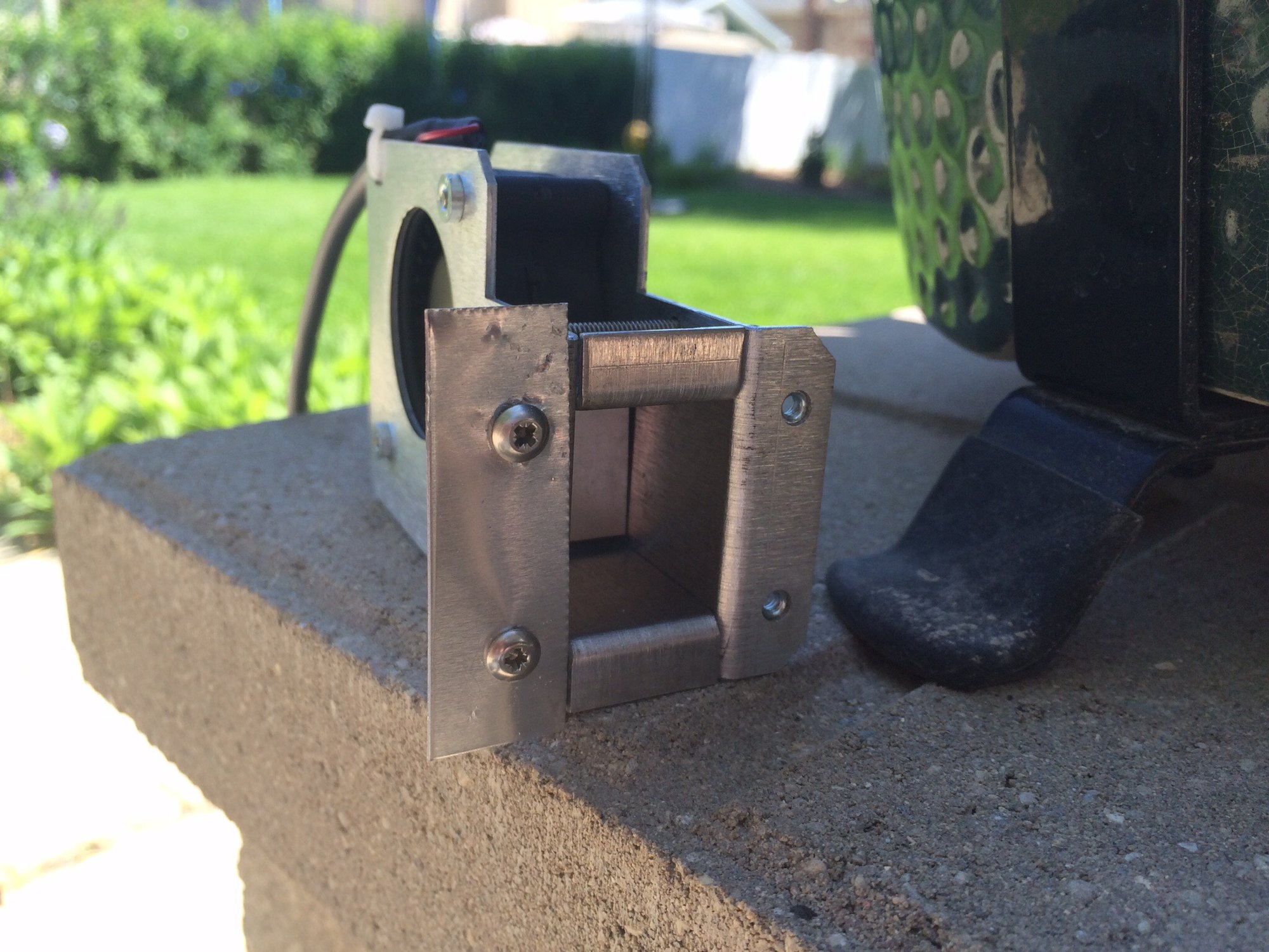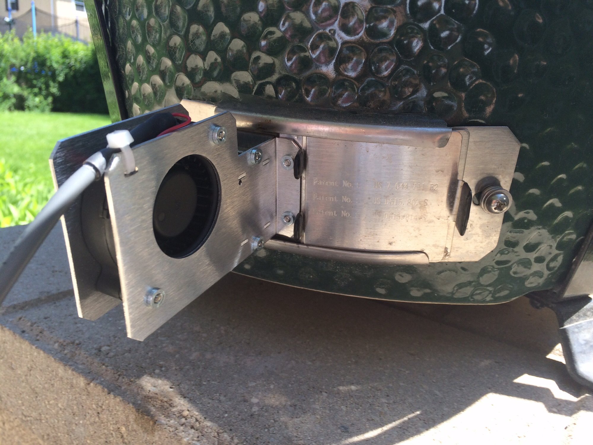 Built a second level to gain some area and made small adapter to attach a Stoker. You only need a small piece of sheet metal to allow the door to slide over. I haven't tried to Stoker on my Little Friend yet but I don't see why it wouldn't work.