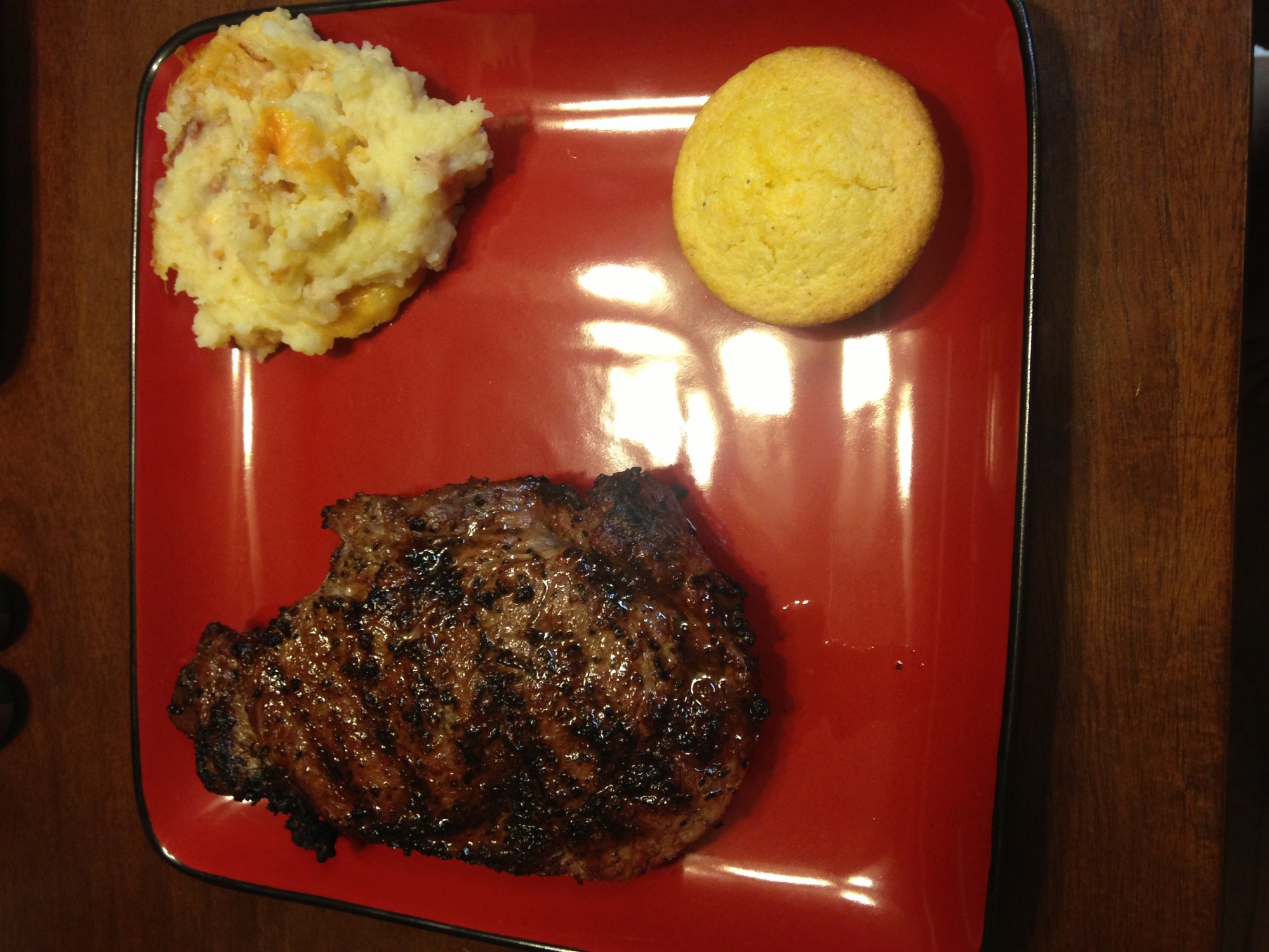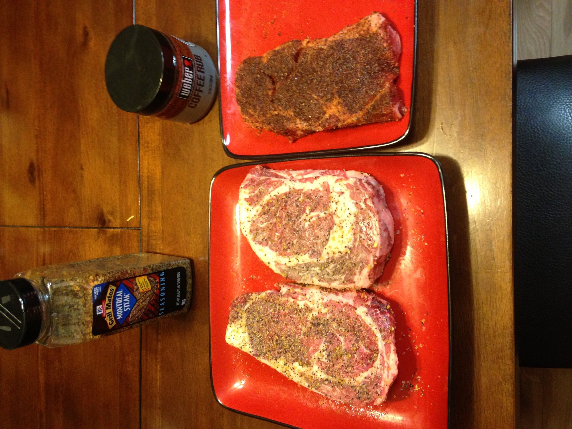 Cooked up some ribeyes tonight. Seasoned mine with Montreal Steak and hers with webber coffee rub. Went for a second try at mashed potatoes on the grill. Added cheddar, fresh cooked/chopped bacon, butter, and sour cream. Cooked indirect at 500 til the cheese browned a little. They turned out great.  Will definitely do these again.
