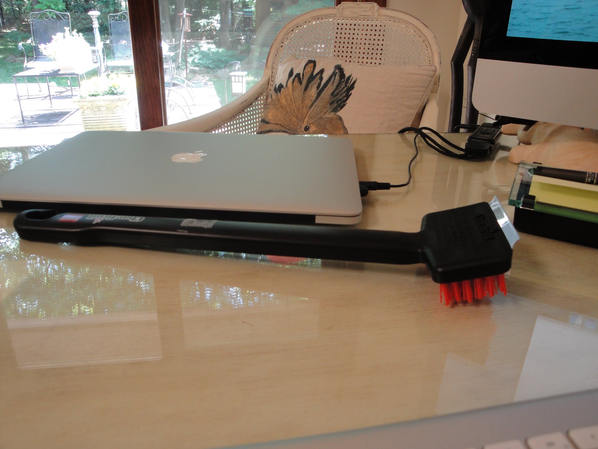 Ditched my brush last time it came up. Bought a little scotch brite type thing. Truthfully, I rarely use either. Fire is my friend.