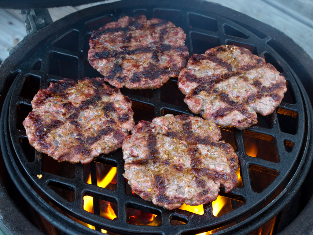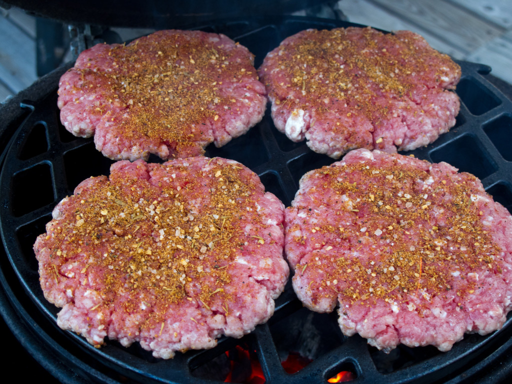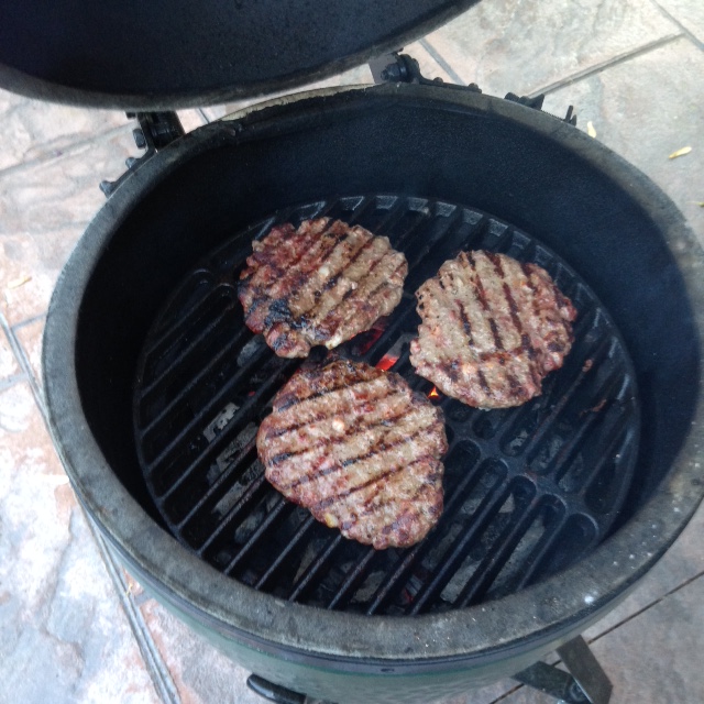 Burgers on the menu tonight. I have been wanting to grind my own chuck with bacon mixed in, but my wife came home with 90% ground beef, so plan B. I finely chopped 2-3 oz of bacon and mixed into the meat along with a good dose of cracked black pepper. Made the patties fairly large and thin so that the bacon would cook. Cooked on a hot fire on the small with the CI grate, they were great! I meant to save the 3rd patty for lunch tomorrow, but caved in and cleaned up the leftover.
