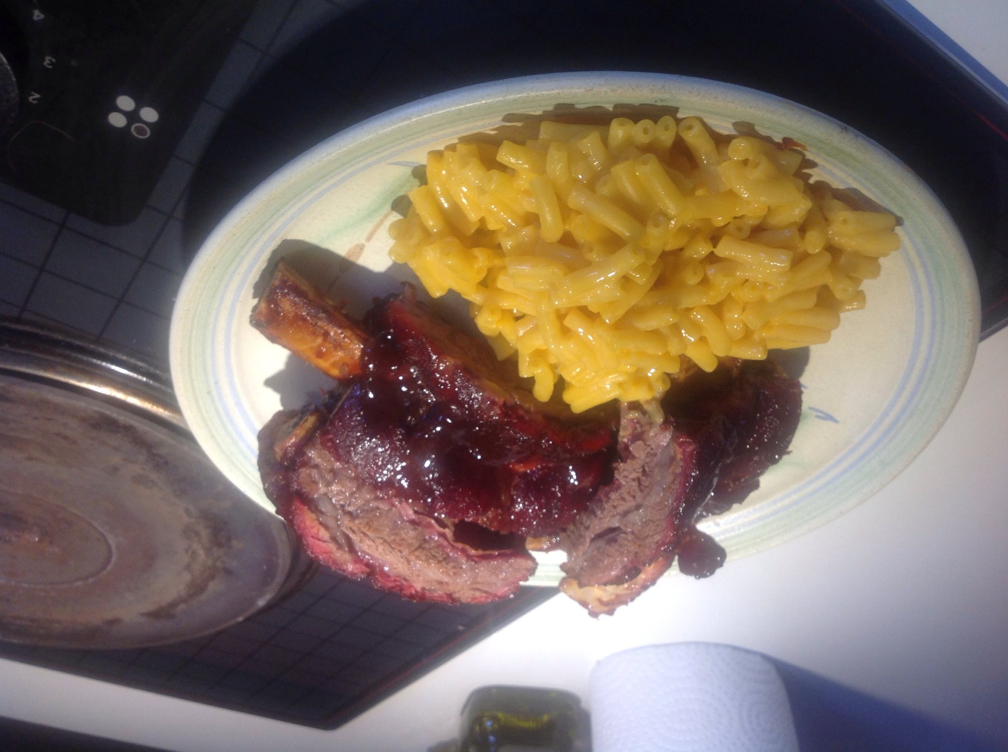 REALLY nice looking ribs. I held one hand over the mac and cheese from a box while I admired the ribs.Phoenix