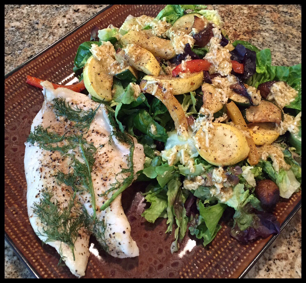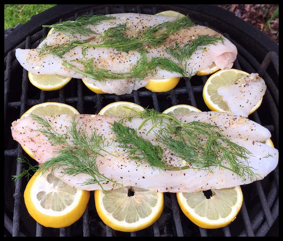 Rubbed the Roughy with Lemon Pepper,little Old Bay and fresh dill and put on the small with a bed of lemons.