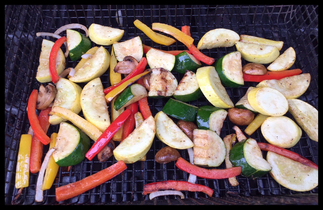 Picked up 2 filets and some salad fixins for supper.  Heated up the veggies on the gasser. Didn't wanna fire up 2 eggs but wanted everything ready at the same time.