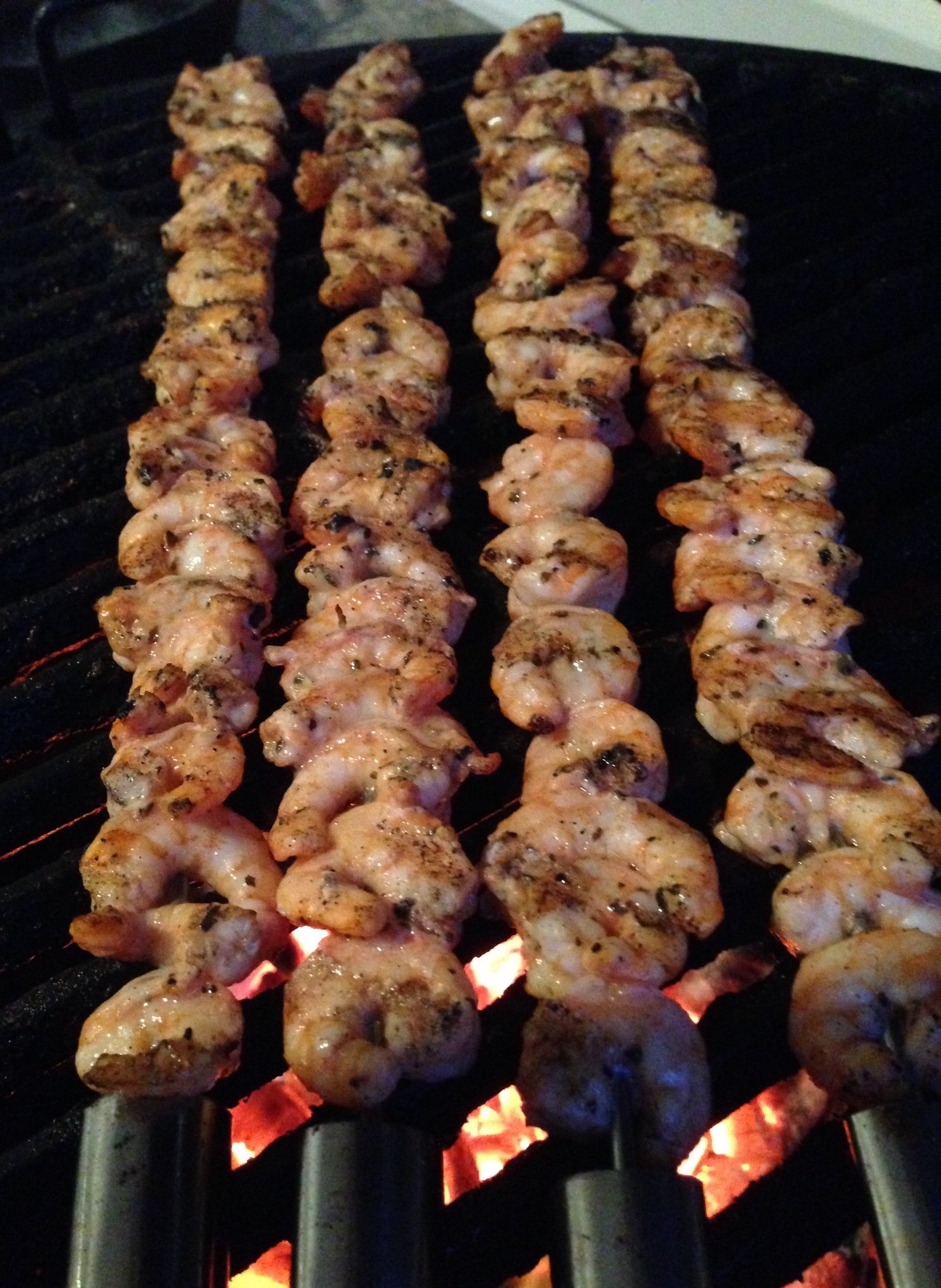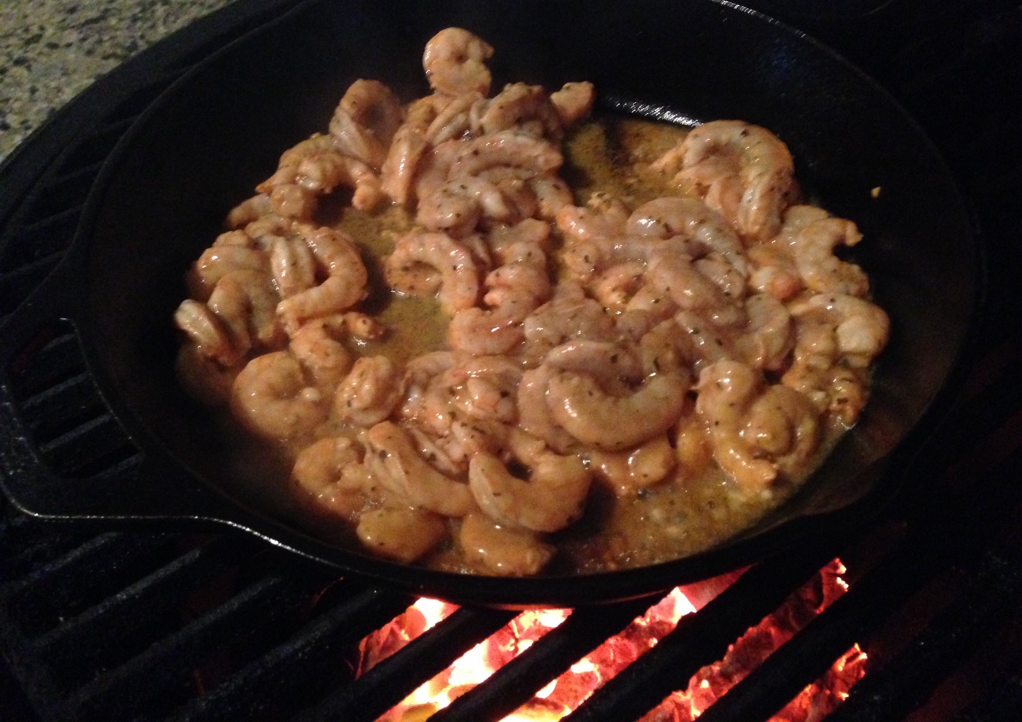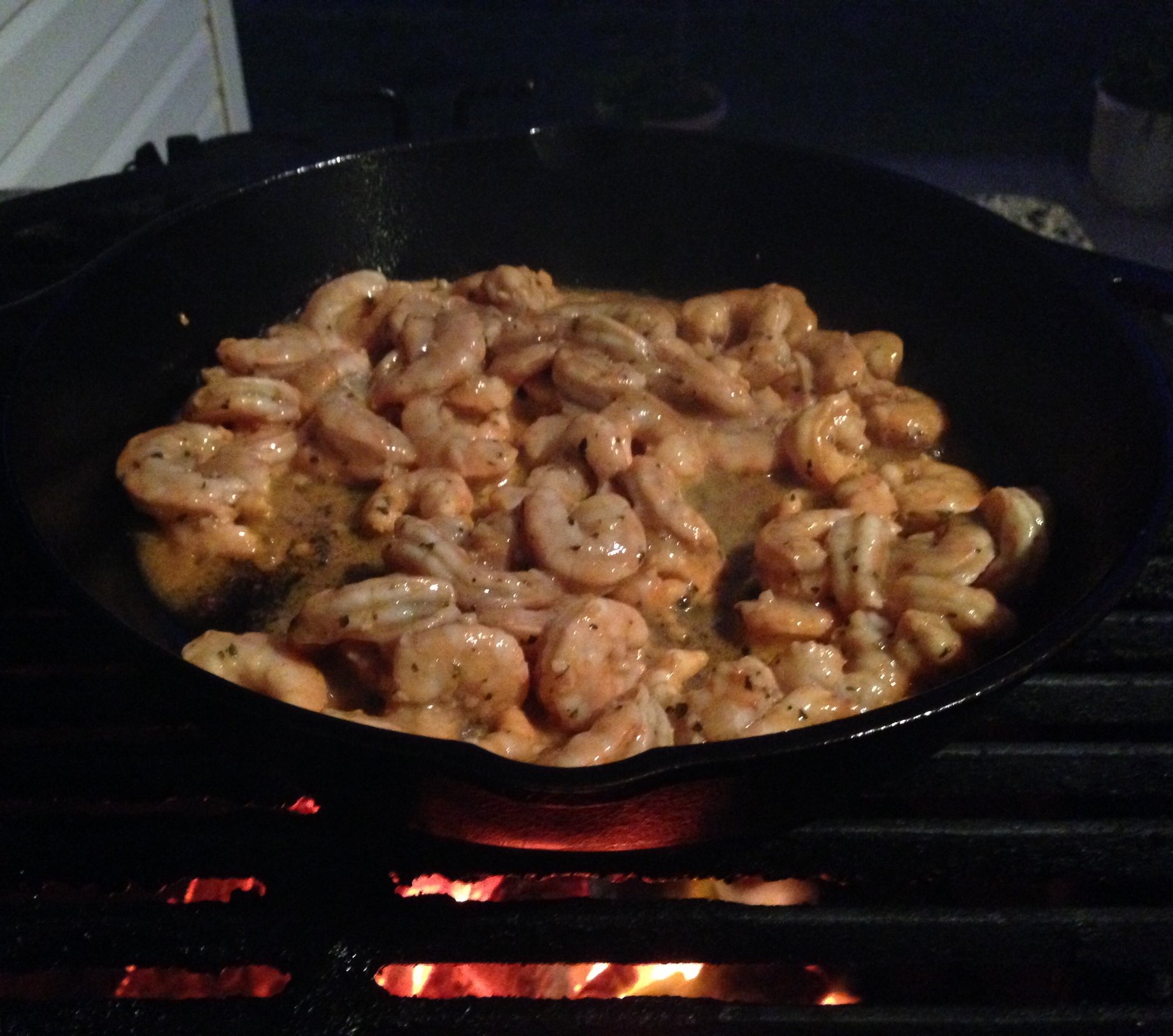wife wanted shrimp, so she thawed some and peeled and deveined them. She marinated them in SOMETHING, I have no clue. I just lit the egg and took jaden to ball practice. Got home, adjusted temp, and threw on what she had made up. Had 4 skewers and rest were in a bowl. I just threw on a cast iron skillet with some oil and cooked those. I ate mine on buttered toast. Everybody else ate tacos. Pretty good stuff. My honey did well.