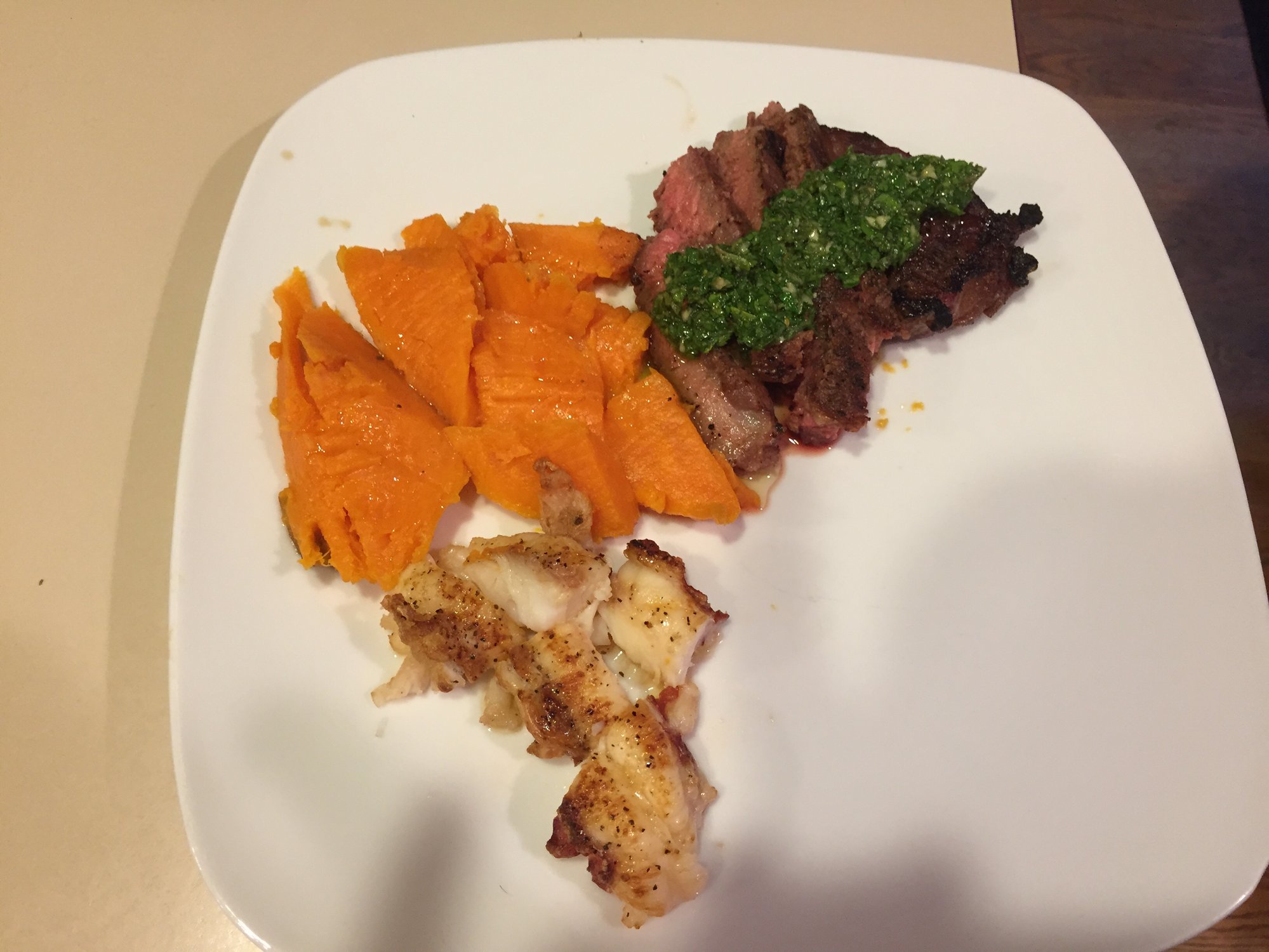 The Mrs. and I split a 22 ounce ribeye along with 2, 5 ounce lobster tails and a huge sweet potato. Great dinner.