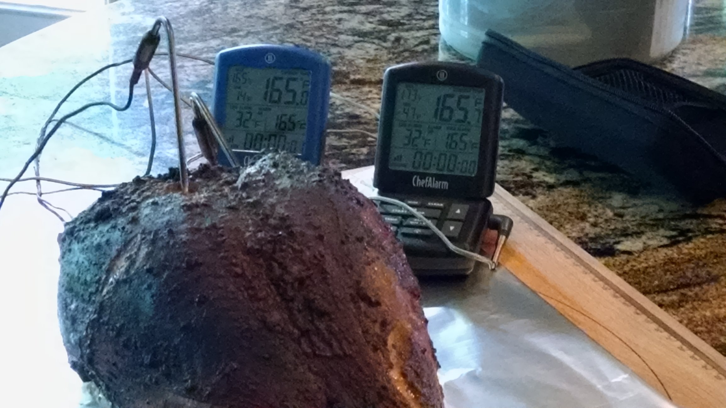 Nothing fancy, just a bone in turkey breast injected with Tony Chachere's Creole Butter & Jalapeno and rubbed with grapeseed oil with various seasonings. I'm posting because it's my first cook with the new Chef Alarms. I had used some old thermoworks thermos that **** the bed, well the probes did, so it was time to just bite it and go pro. Anyway, as you can see I'm monitoring both lobes and the reading is just a few 10ths of a degree different. My old thermos would be a few degrees different! I love the fact that these probes are built to last and can stand 700 degrees. I'm not dumb enough to actually use them at 700 degrees, but I love to drink beer and make bad decisions. Enjoy your Sunday!