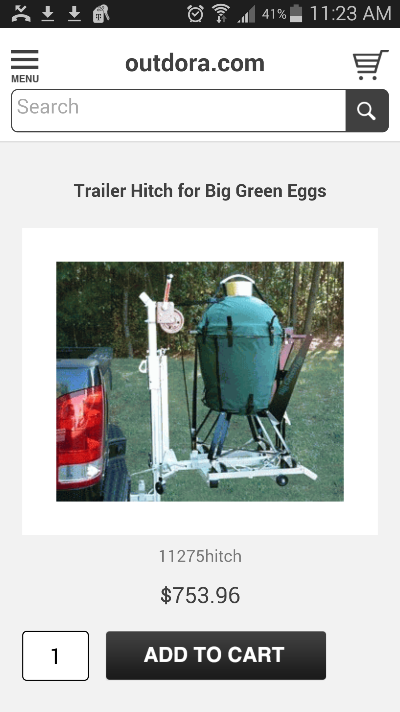 SoCalTim said:If your talking about the hitch assembly that allows you to transport your egg on your vehicle, it's no longer in production. Myself, I would never put my egg on such a thing ... I can only imagine hitting a pothole and or worse, being rear ended and watching my major investment spread out all over the highway.
