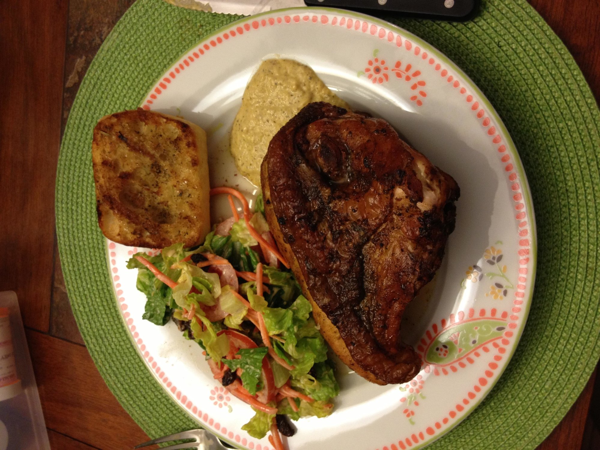 Tonight, I did my favorite, go to cook, smoke roasted chicken breast. So simple, yet so good. Added SWMBO's Peruvian. pepper sauce for dipping. SWMBO made a salad for me and I also grilled some garlic bread with ciabatta roles. Easy Thursday night cook, but one of the best meals I've had in a while.