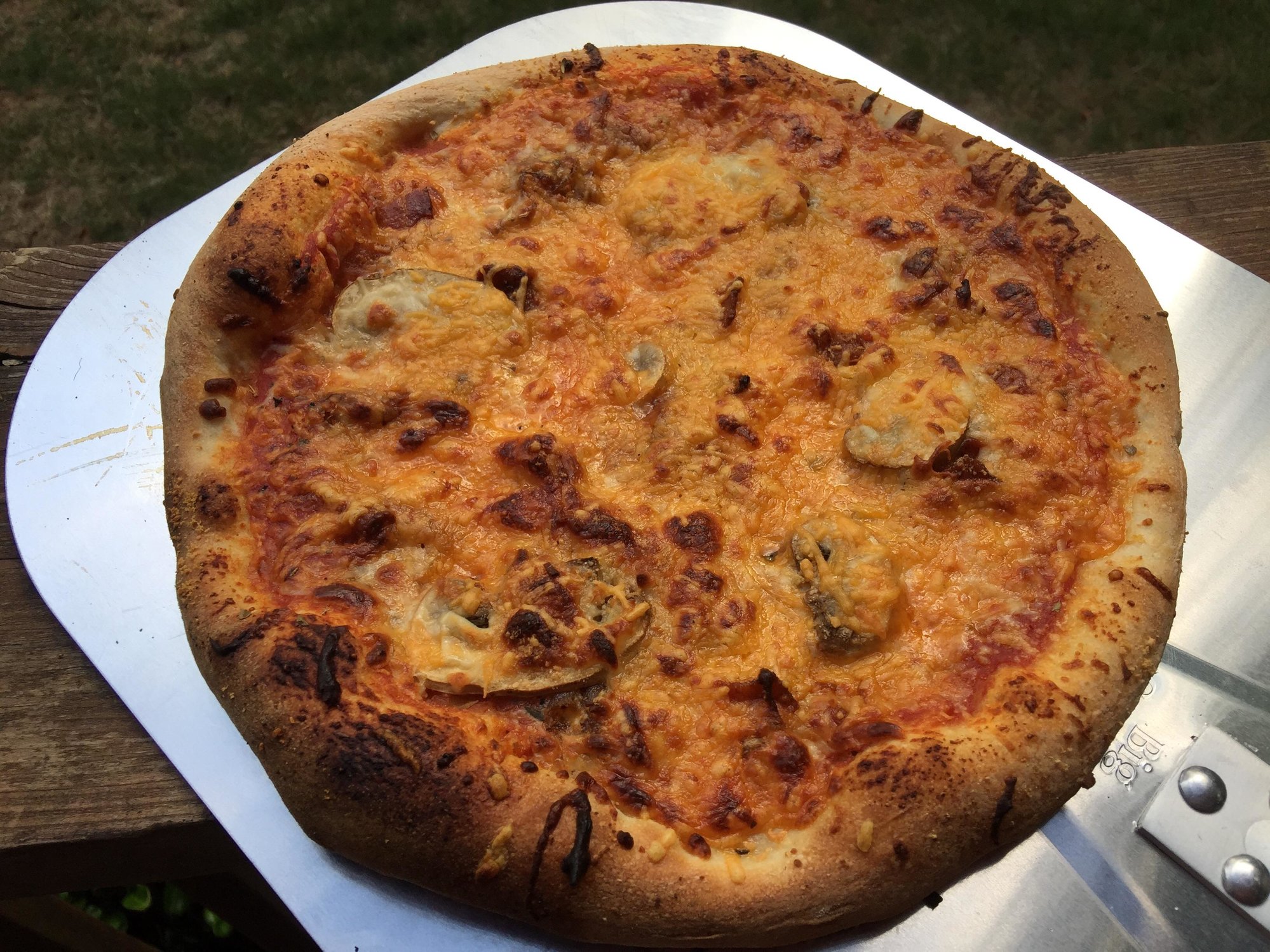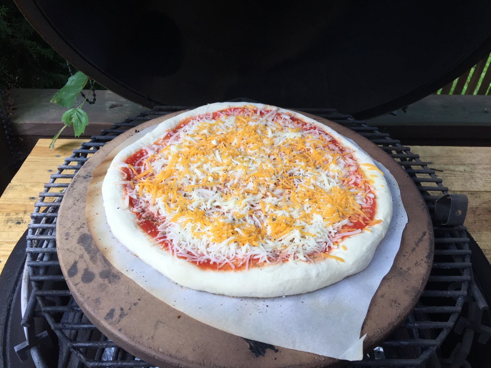 my first try at pizzas didn't go particularly well. Mixture of issues (too high hydration dough, too hot temp, didn't get the stone high enough) caused poor results. Pizzas stuck on the peel, burnt crust before cheese was melted. Based on some good advice from this forum I had much better results this time.