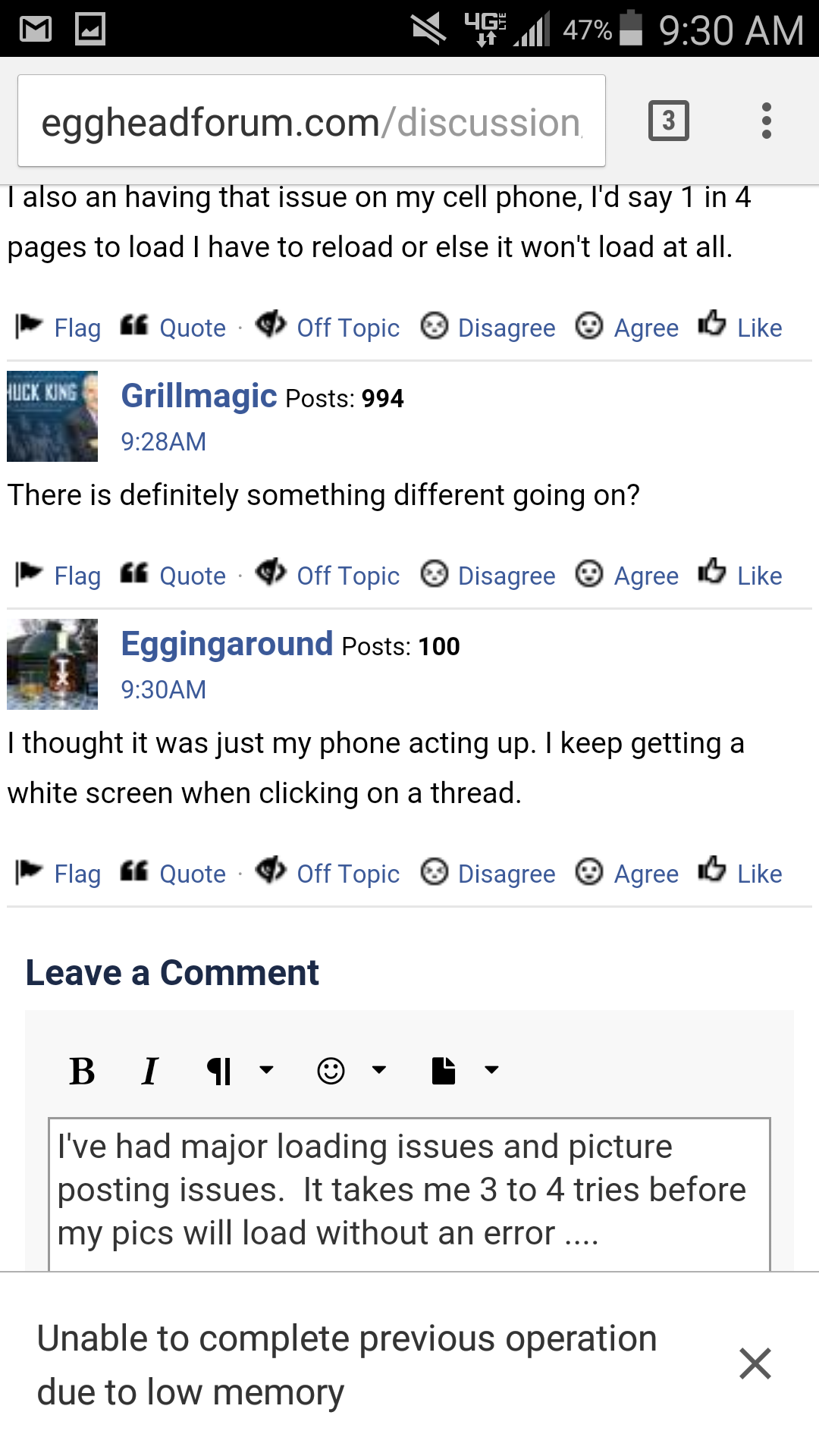 Also, sometimes when I'm in the middle of writing a reply, I get a popup that says "There was an error performing your request. Please try again." But I didn't "request" anything. It just happened with this one (happens fairly frequently of late). Doesn't seem to impact anything though.