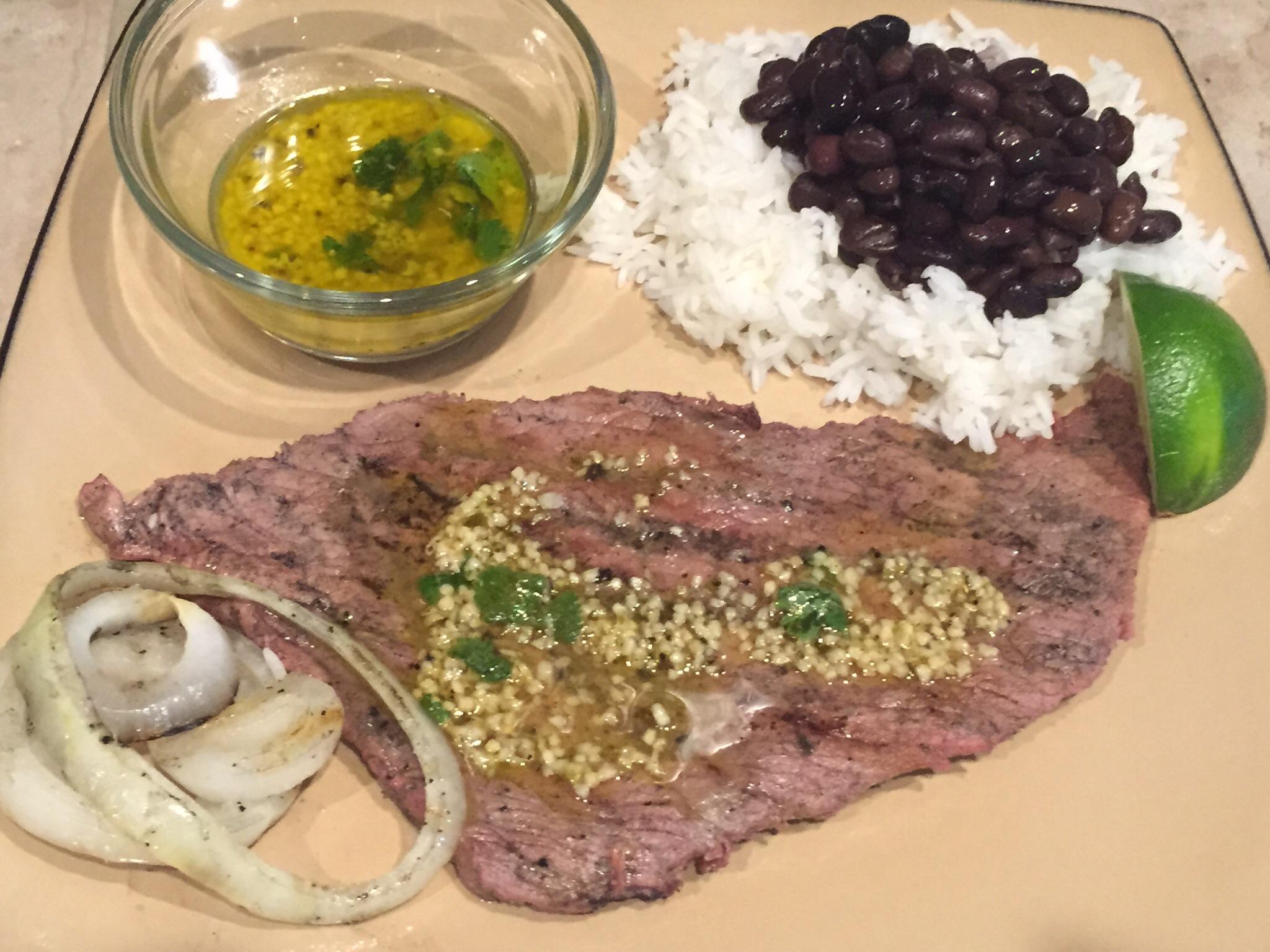 Cuban Night: Bistec de Palomillas, Mojo, Arroz, Frijoles