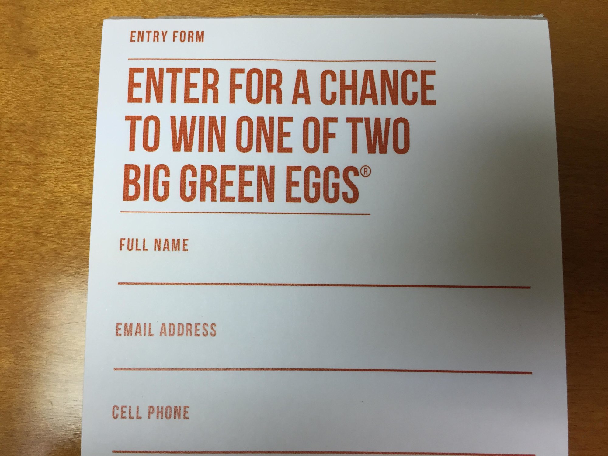 Went to my local Fresh Market to grab some lunch and stumbled upon a raffle for one of two LBGE's being given away this Saturday. So naturally I filled out one for myself, one for my wife and one for each of my two children.