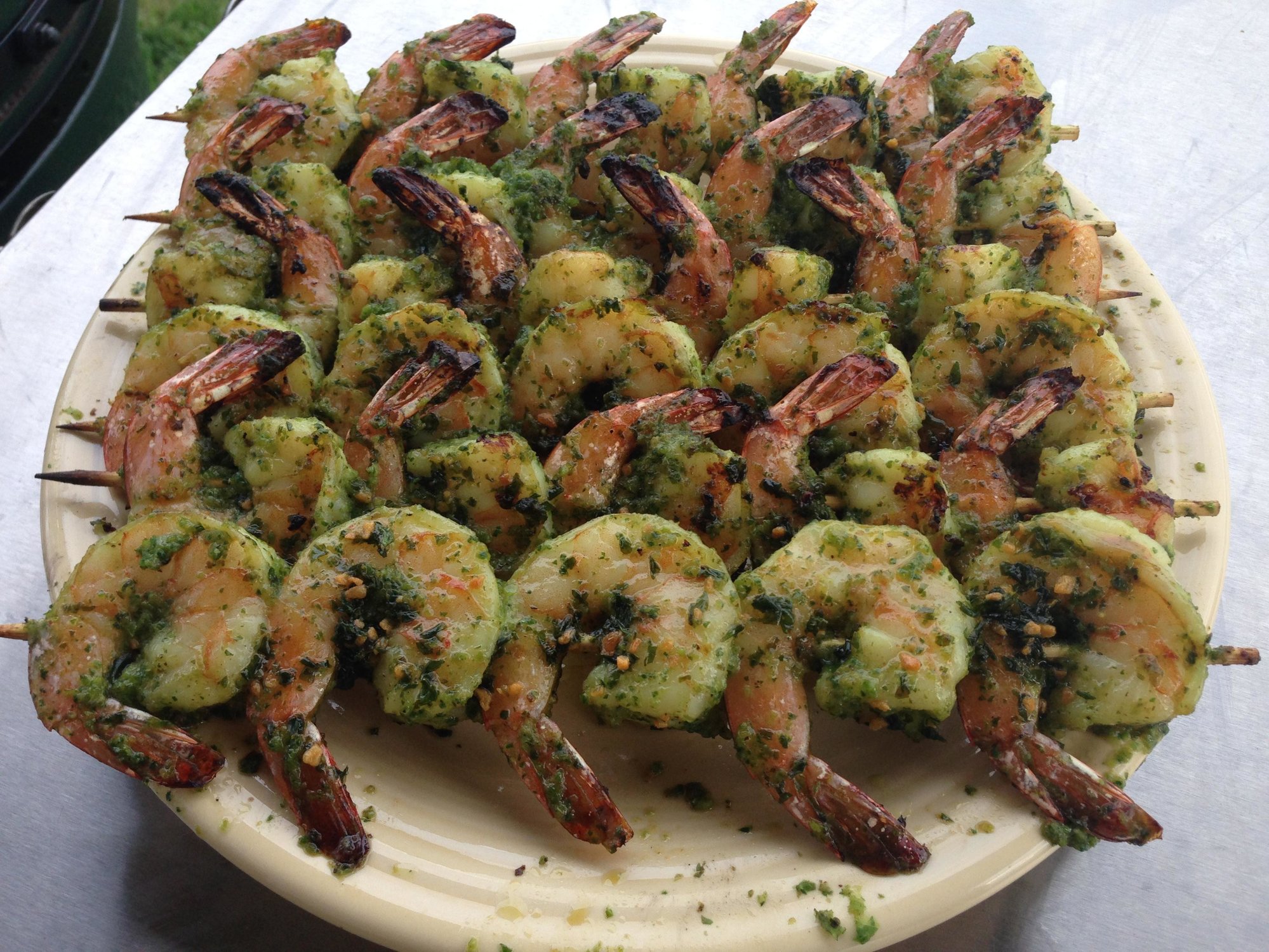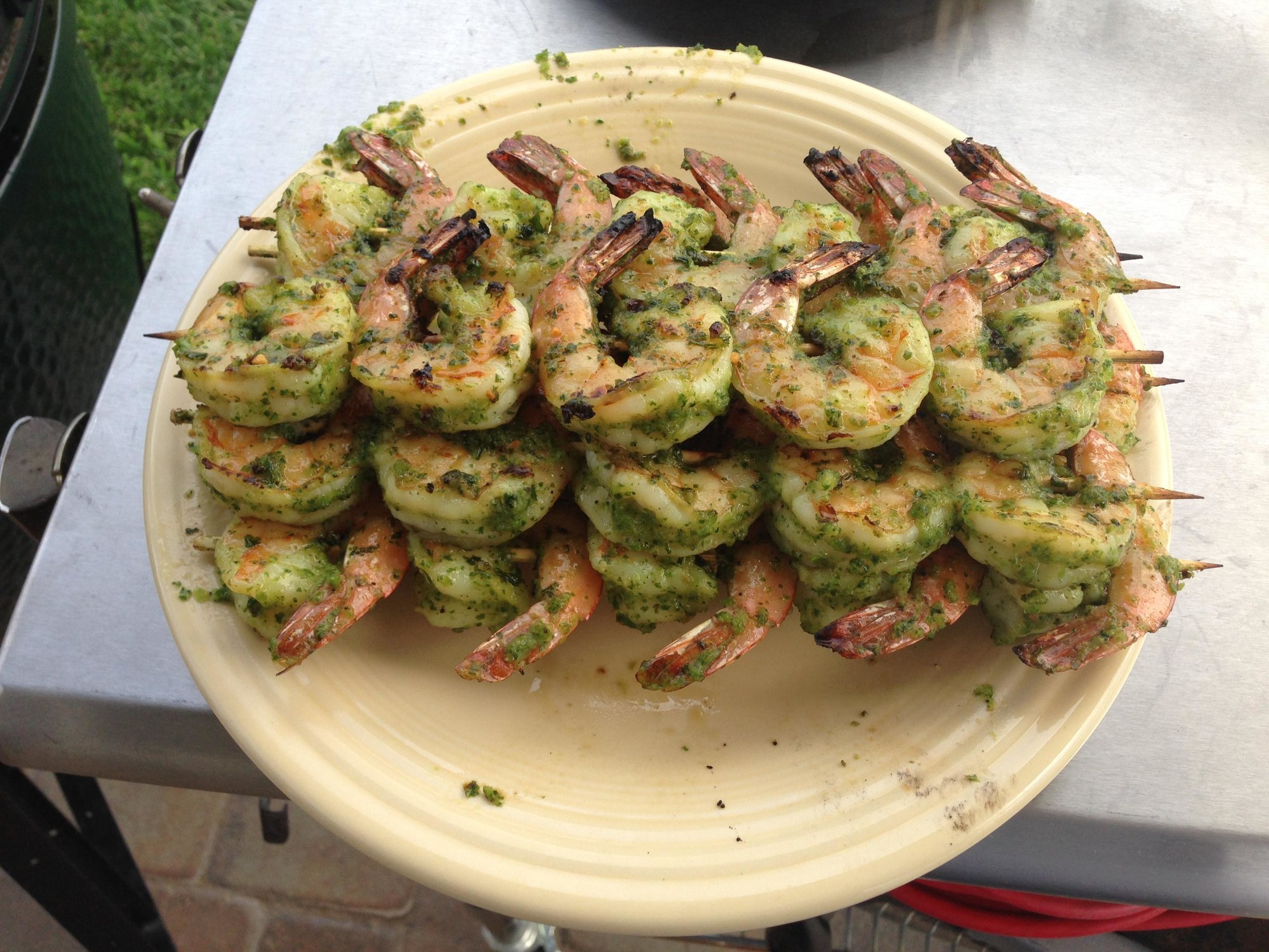 Tried the Green Lightning shrimp recipe last night, and man was it good. I would probably add some extra jalapeno seeds or just an extra jalapeno for a little more kick, but the flavor was great, like a much better shrimp scampi. I also chose to include just a little bit of the lime juice in the marinade portion and then just squeezed it over the shrimp after the cook. Paired with a watermelon, corn, lots of fresh herbs and goat cheese salad. Perfect summer meal!