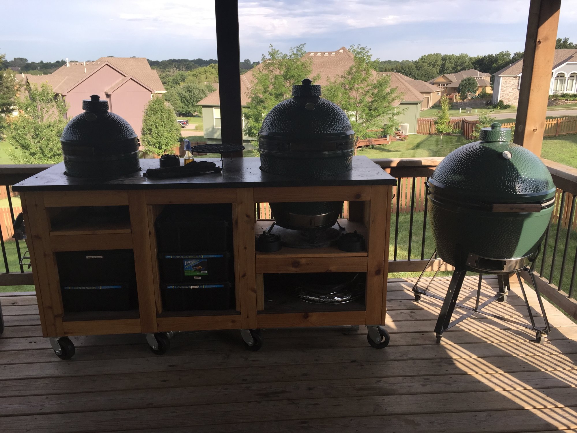 Last week, I purchased another LBGE and a MiniMax. The dealer that I purchased my BGEXL seems to have yearly sales in July on eggs and accessories, 25% off. I'll be replacing my SBGE with the LBGE. I spent this past weekend working on modifying my table to accommodate the 2nd LBGE and lowering the 40" height. I'll probably give one of my kids the SBGE.Kansas City, MO - XL, LG, SM
