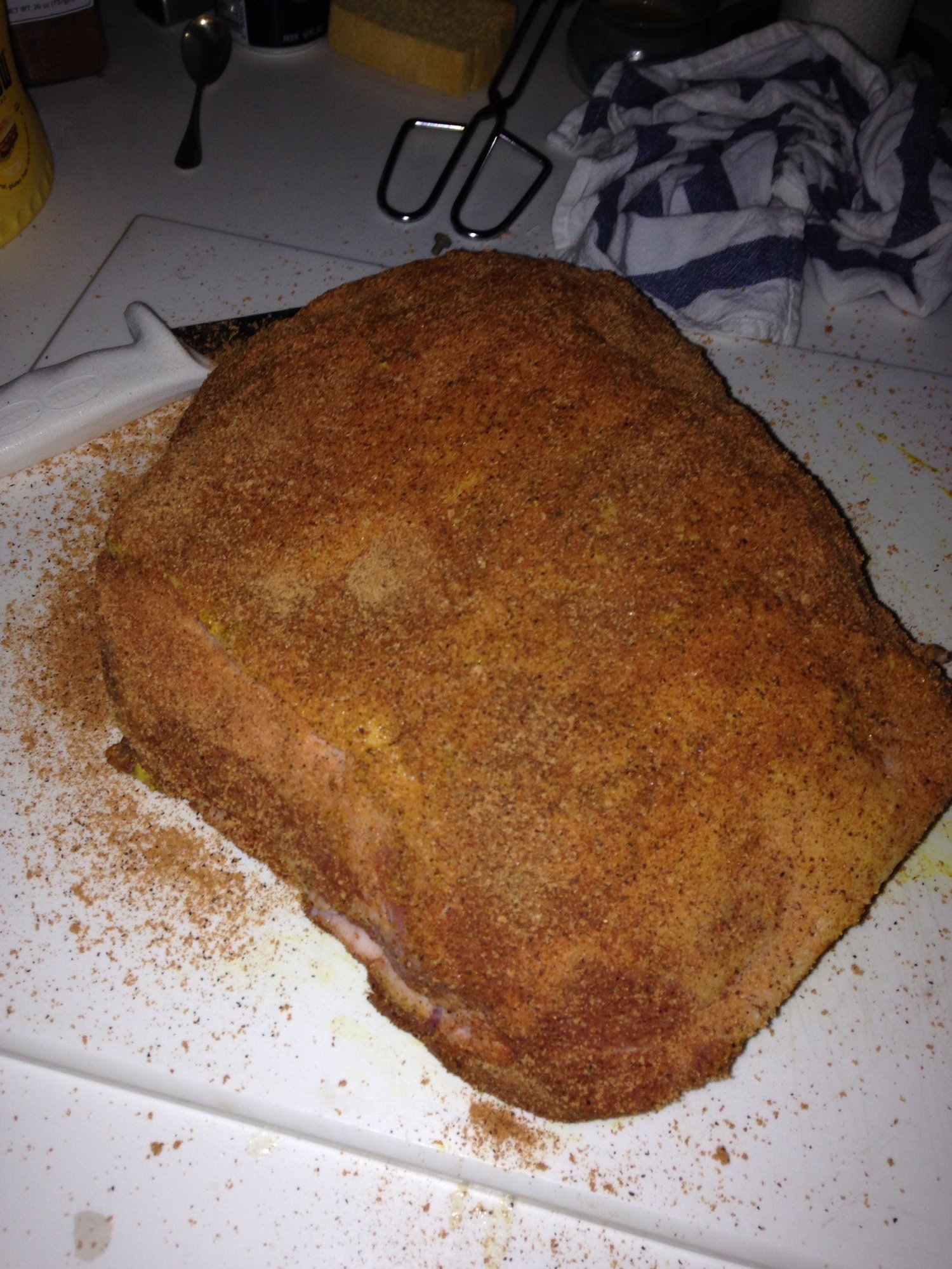 Time to load her up in the rain. Head hurts. Attached pic was my "rub job" in the dark. Went with Bad Byron's. To be continued... Columbia, SC --- LBGE 2011 -- MINI BGE 2013 -