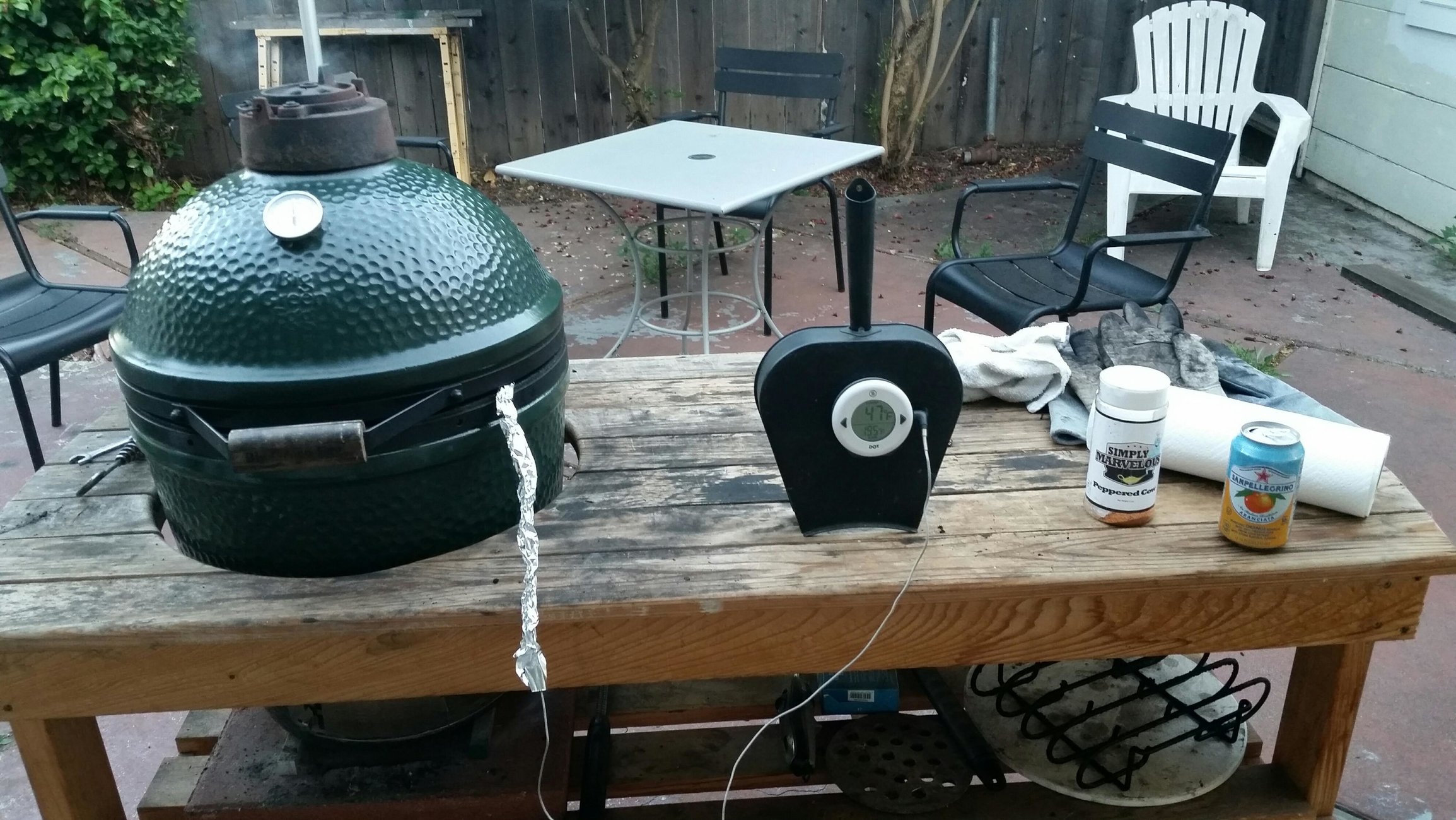 No smoking wood this time, only orangewood lump on it's own. Will follow up with the money shots tomorrow, around 12-3pm pst.
