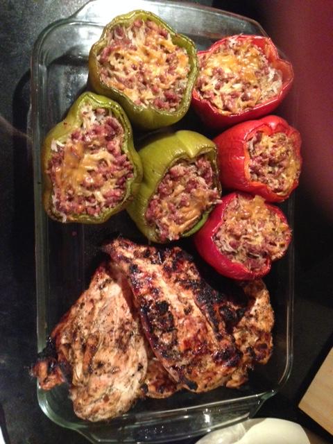Last night was the first time we decided to do stuffed peppers, I continued to see them pop up on here so I thought I would give it a shot, they did not disappoint. We stuffed them with rice, beef, jalapenos, onion and a few spices, other sides were broccoli and potato salad. For the chicken, I let marinate for almost 24 hours in Italian dressing and cooked it direct (as low as I could get the AR) sprinkling with Garlic Powder and Southern Flavor periodically.