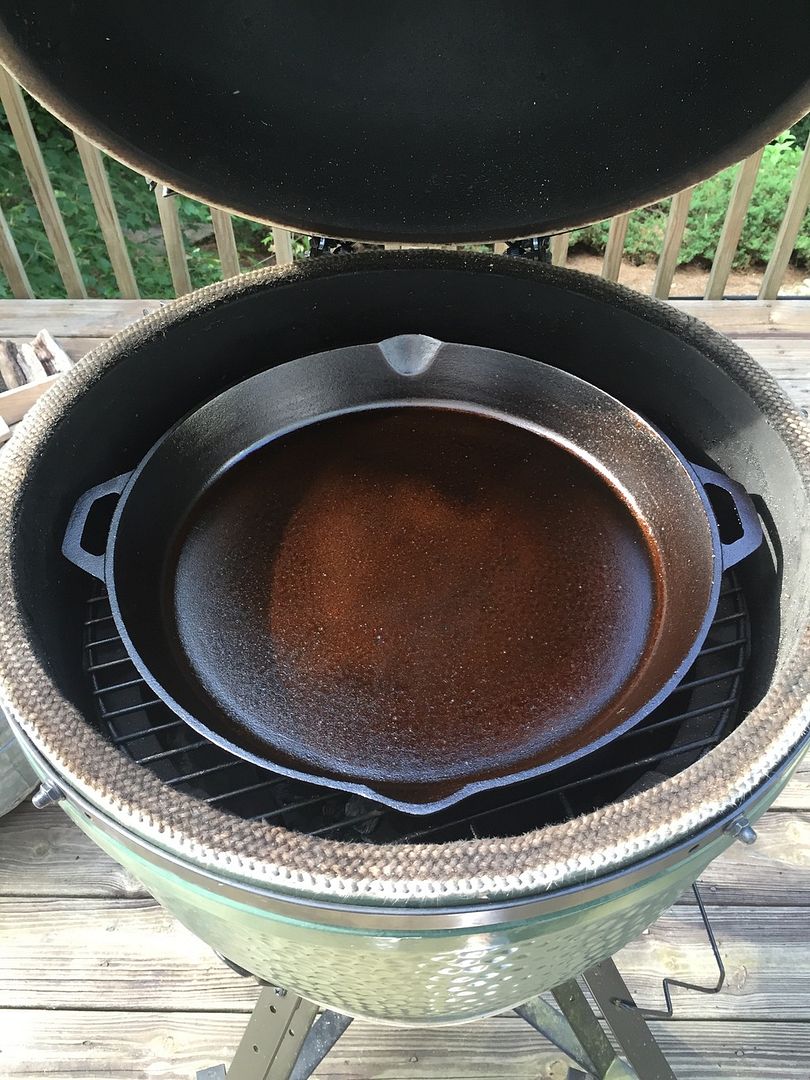 Correct. 16" from Cabela's.SmokeyPitt said:Looks spot on! That is a perfect pan for the large egg. Looks like you did a great job on the seasoning.