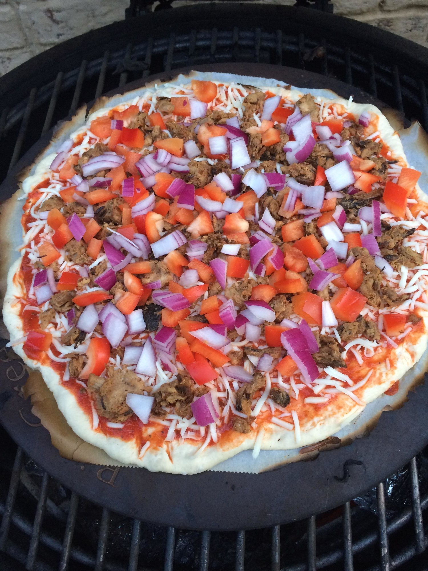 Had some leftover pulled pork, so made two pizzas and some wings last night.