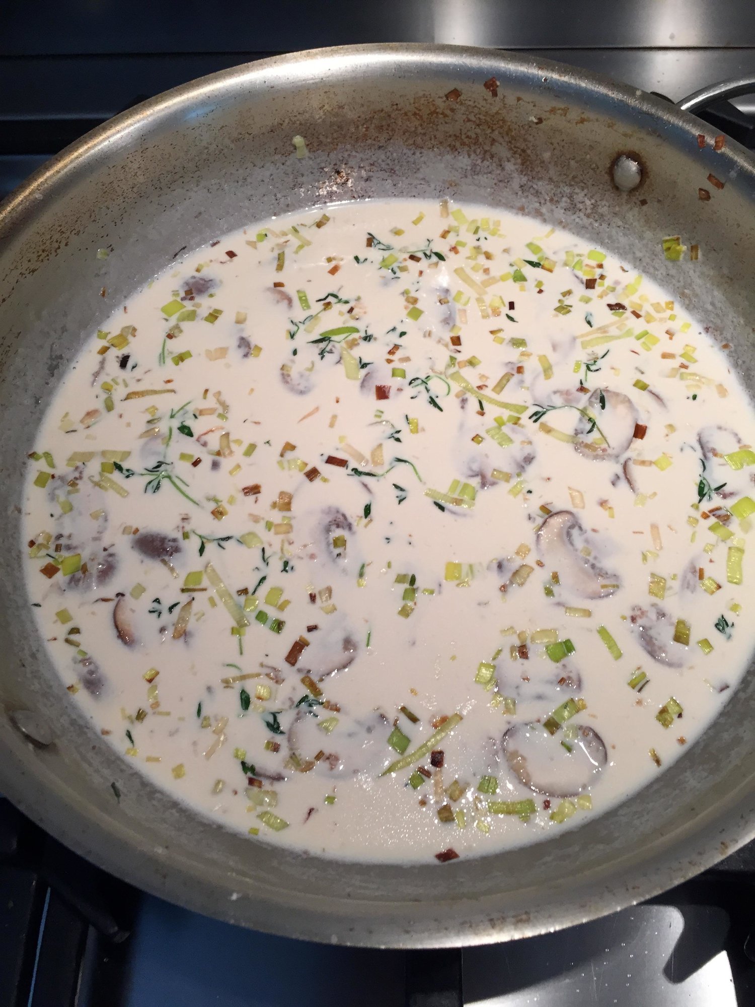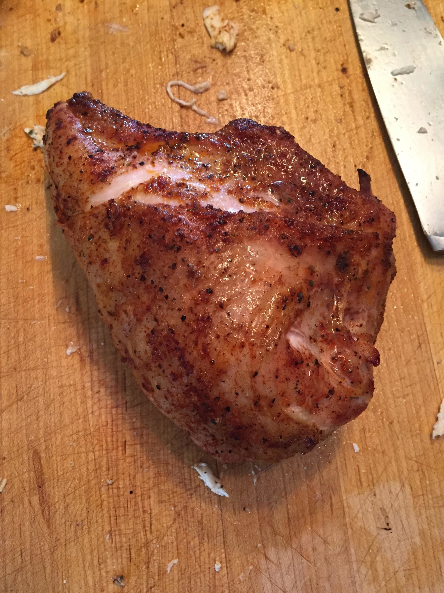 Ok well sort of. Smoked a couple bone in chicken breasts this afternoon - 350 indirect with cherry wood. Diced and added to cream sauce with garlic, mushrooms, leeks and thyme. Penne pasta topped with mozzarella and baked for 30 min.